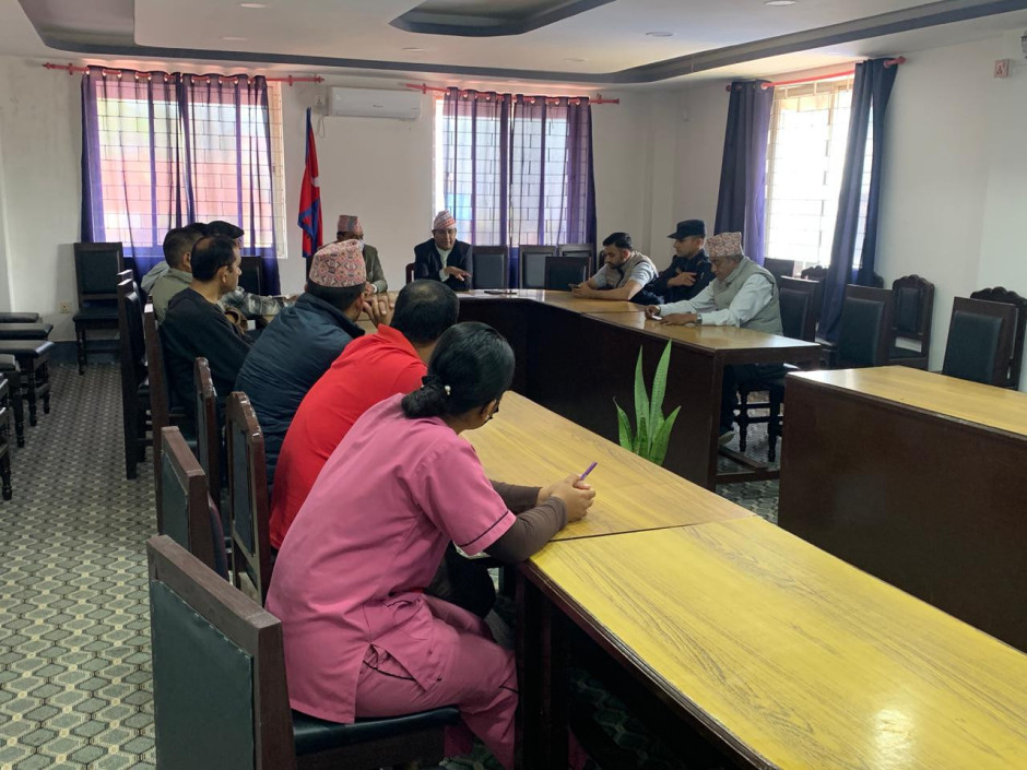 आज मिति २०८२ चैत्र २५ गते प्रमुख जिल्ला अधिकारी श्री बासुदेव दाहालको अध्यक्षतामा भएको लागु औषध नियन्त्रणका लागि सुरक्षा निकाय र सरोकारवाला निकायबीच भएको समन्वय बैठक बसेको ।