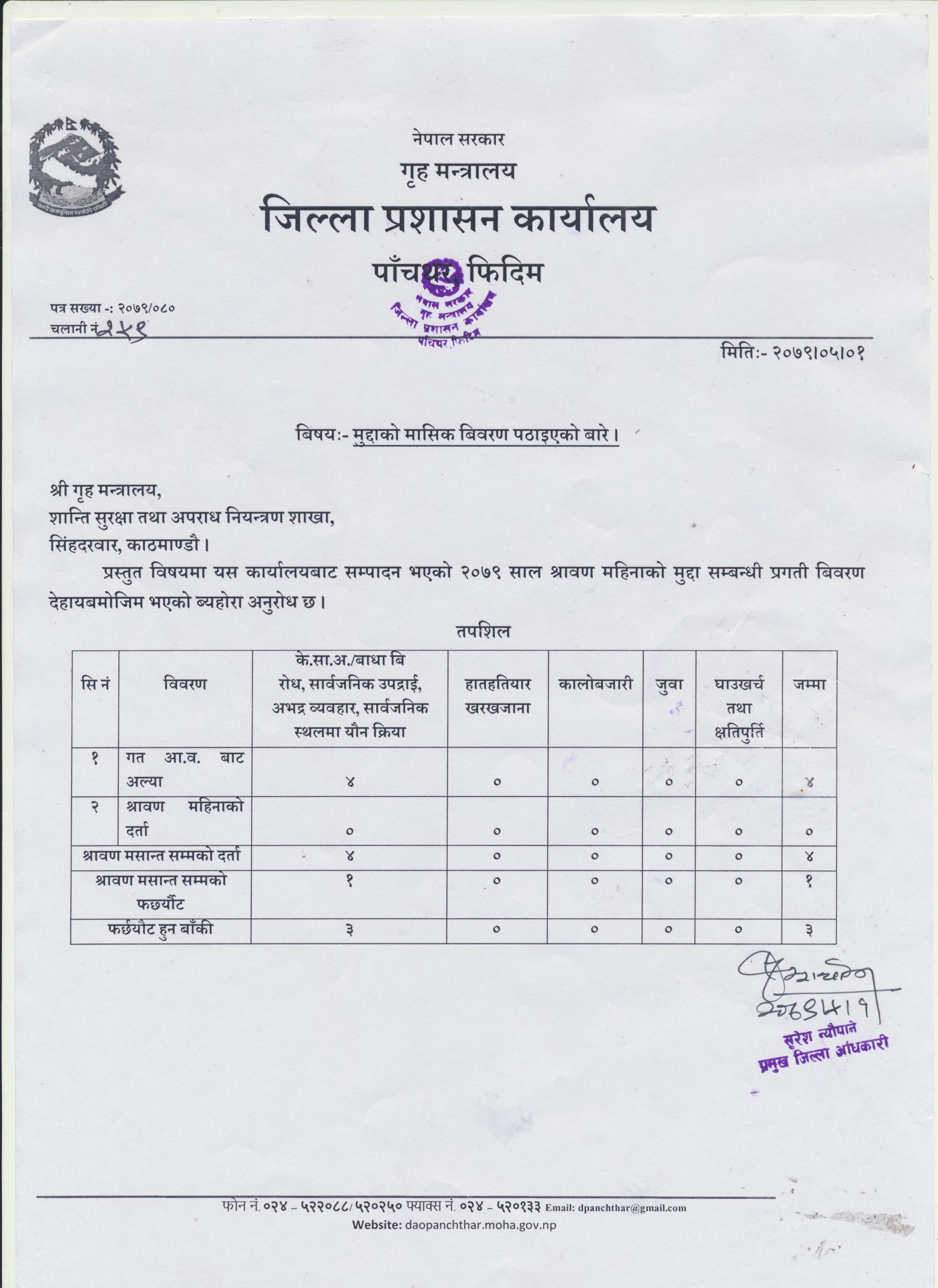 अर्धवार्षिक बुलेटिन २०७६, जिल्ला प्रशासन कार्यालय, पाँचथर