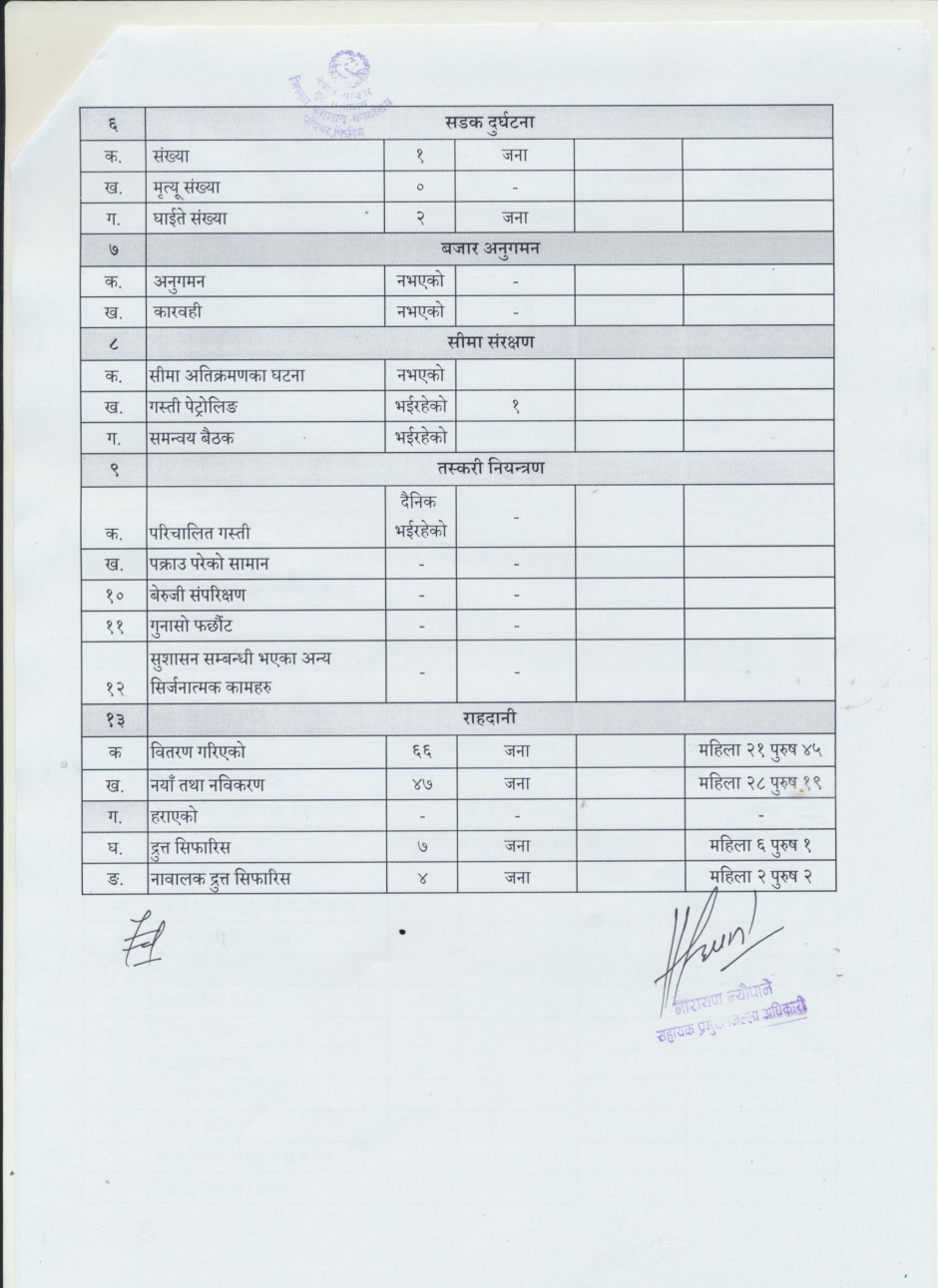 आ.ब. २०७७।०७८ सालको असोज महिनाको कार्यसम्पादन प्रगति विवरण