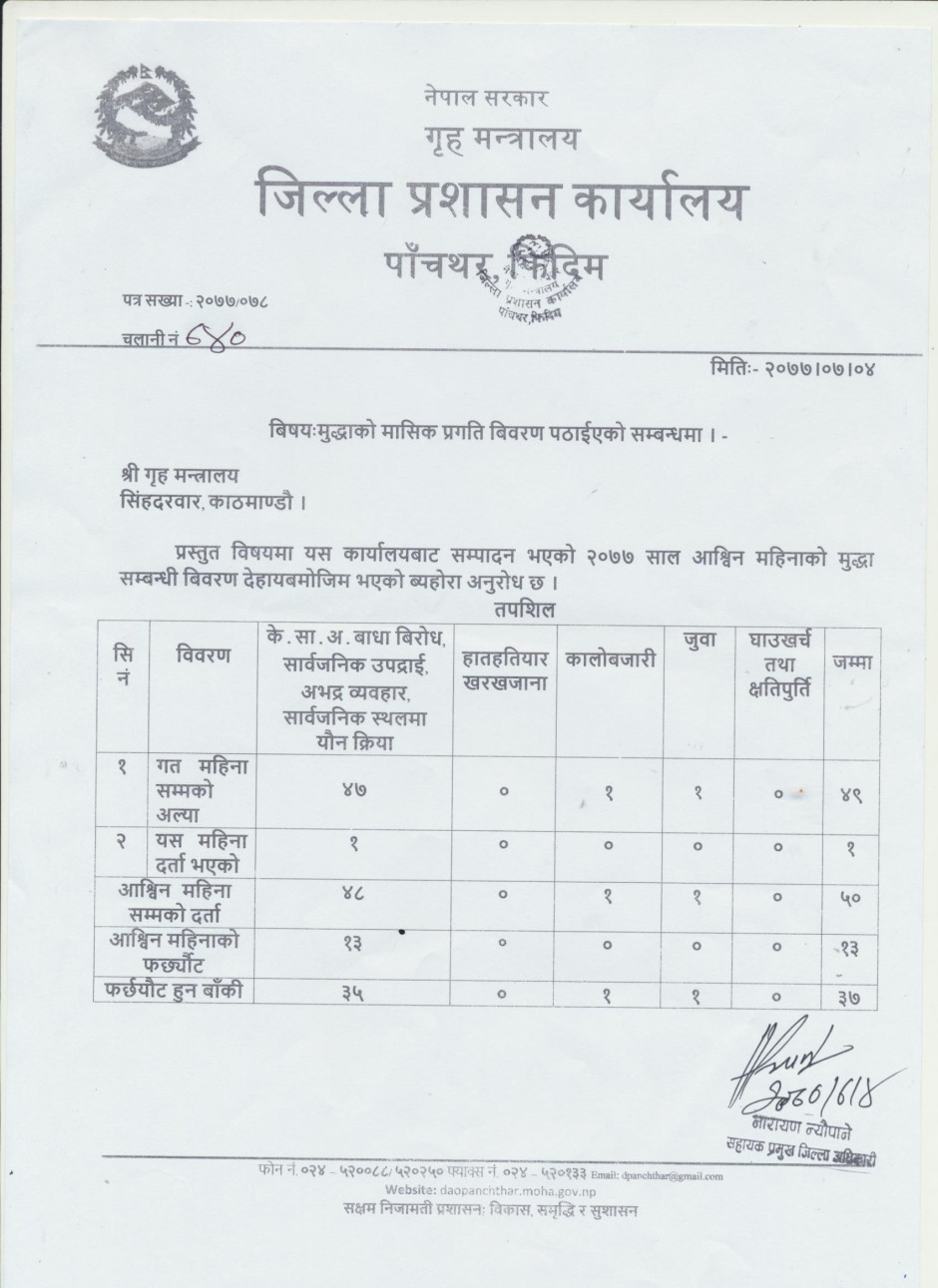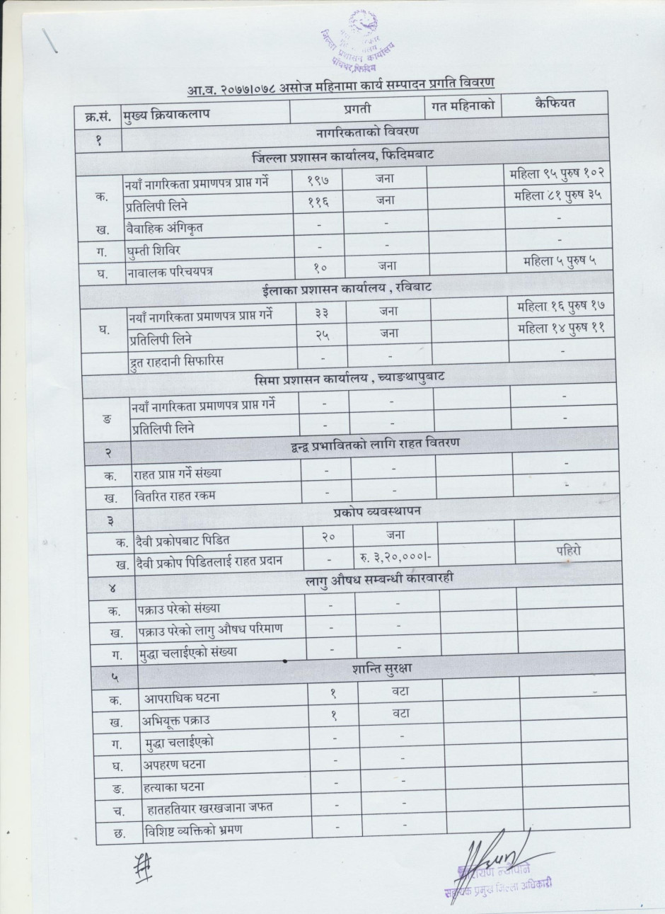 तस्बिर : आ.ब. २०७७।०७८ सालको असोज महिनाको कार्यसम्पादन प्रगति विवरण