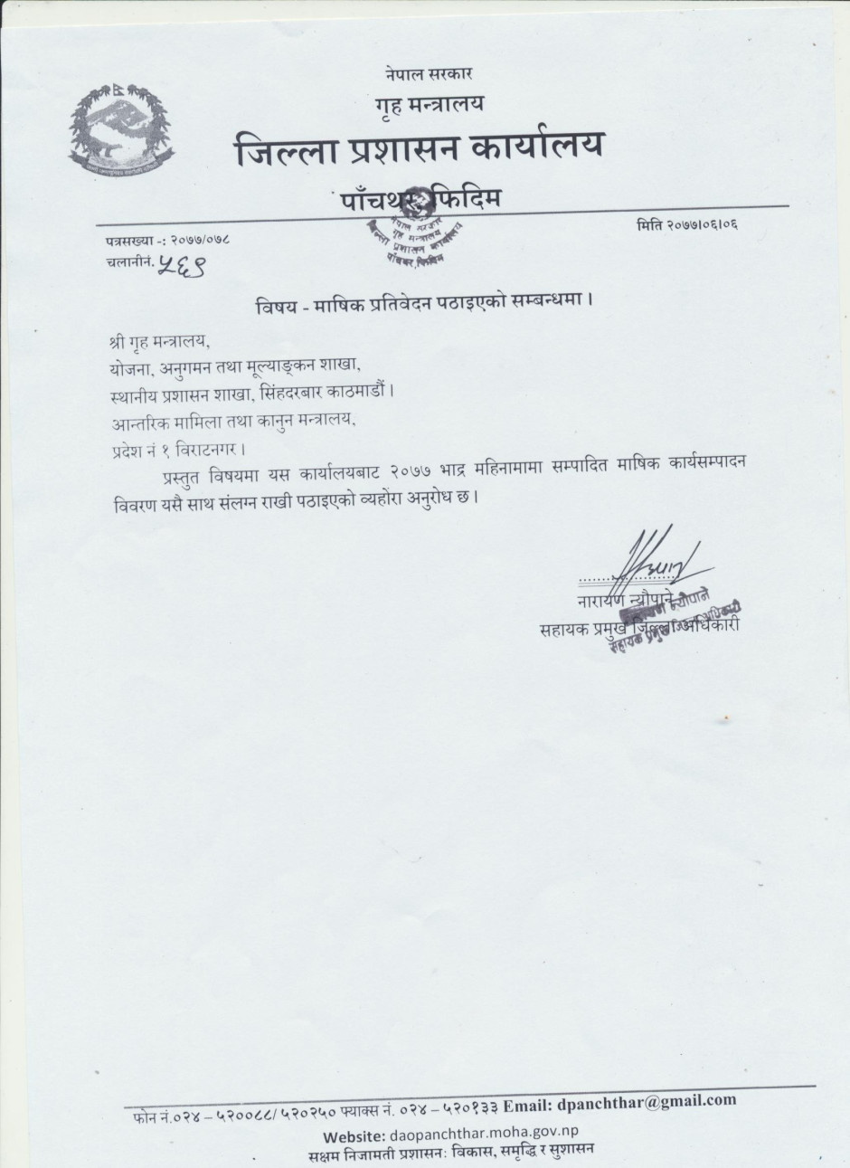 अर्धवार्षिक बुलेटिन २०७६, जिल्ला प्रशासन कार्यालय, पाँचथर