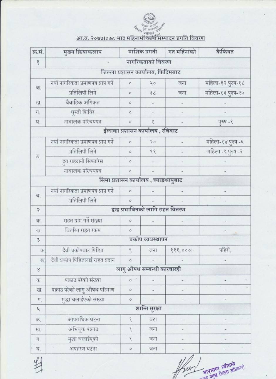 आ.ब. २०७७।०७८ सालको भाद्र महिनाको कार्यसम्पादन प्रगति विवरण