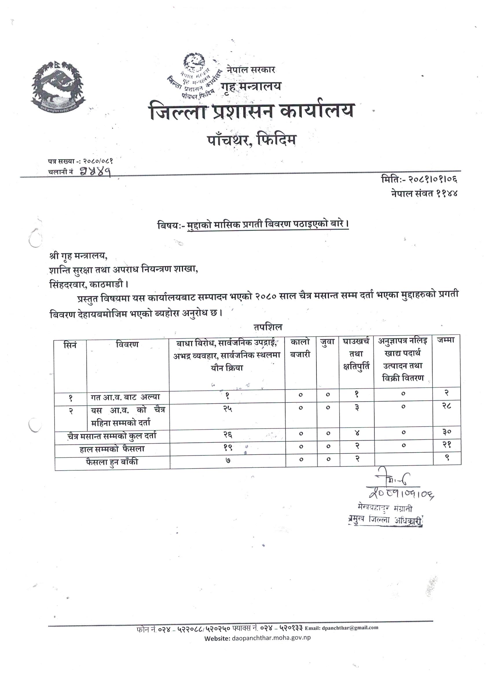 आ.ब. ०८०।८१ सालको चैत्र महिनाको सम्पादित कार्यसम्पादन प्रगति विवरण ।