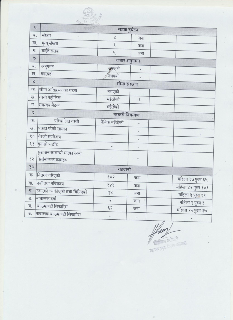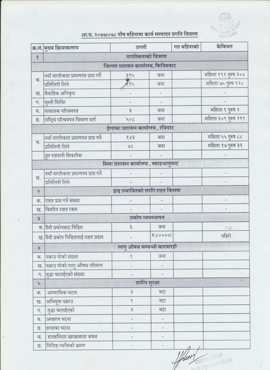 आ.ब. २०७७।०७८ सालको पौष महिनाको कार्यसम्पादन प्रगति विवरण