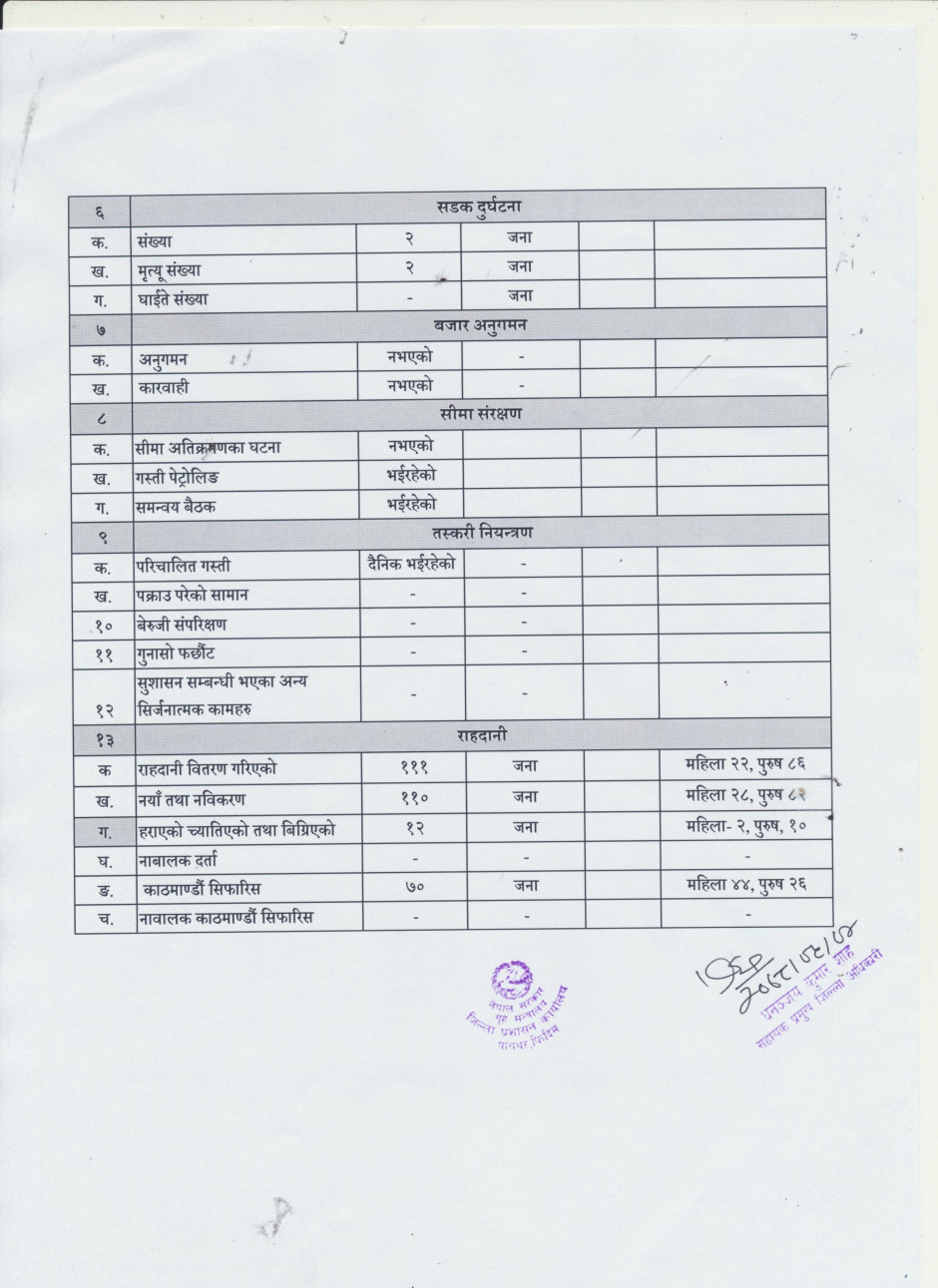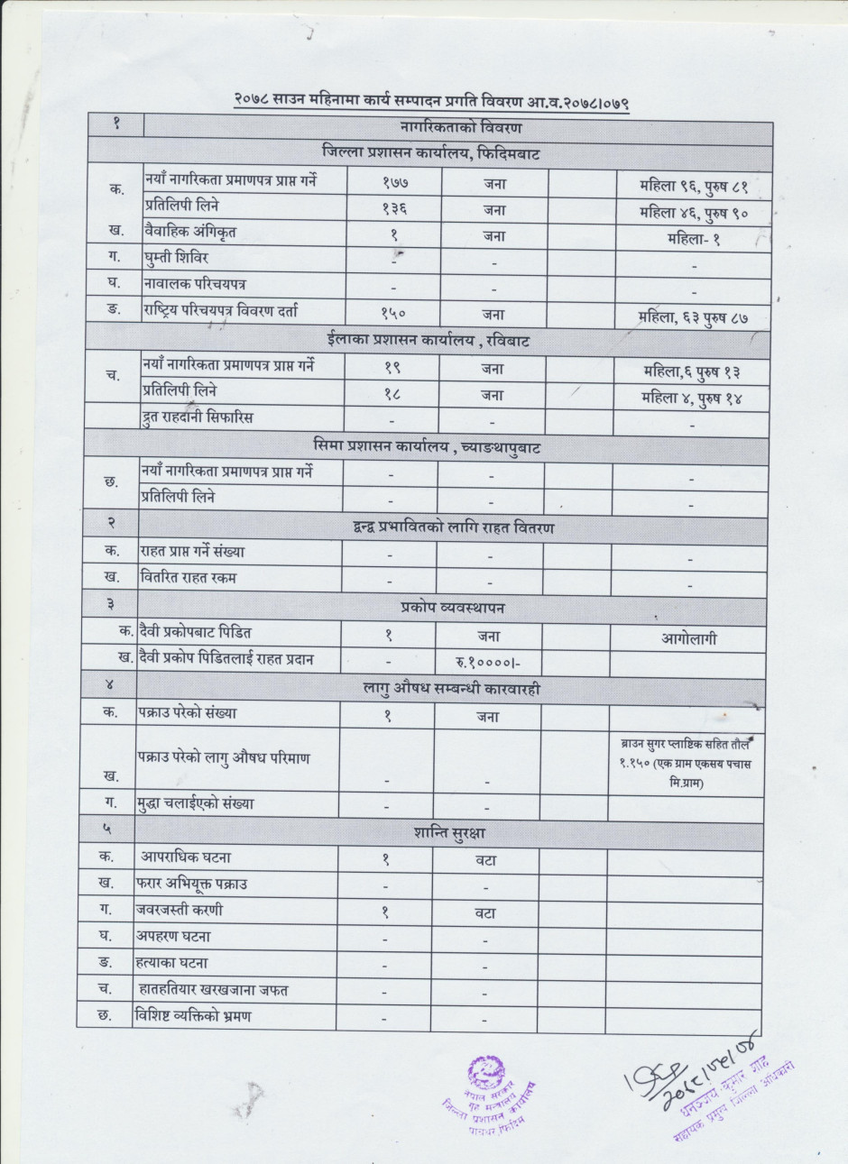 आ.ब. २०७८।०७९ सालको श्रावण महिनाको कार्यसम्पादन प्रगति विवरण
