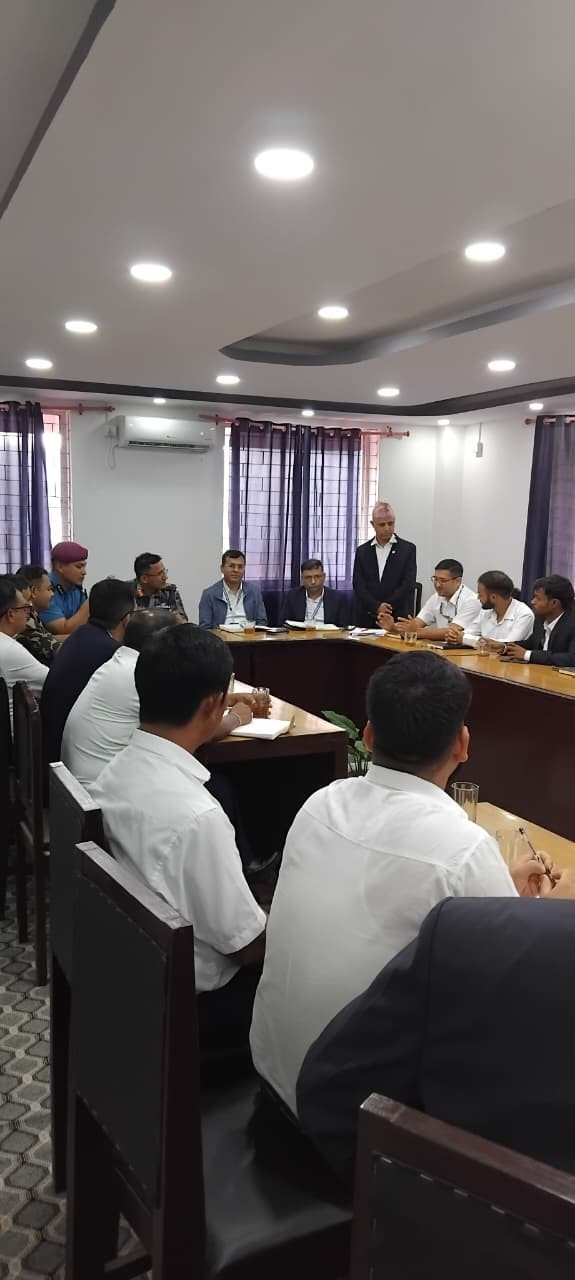 आज मिति २०८२ भाद्र १८ गते जिल्ला प्रशासन कार्यालय, पाँचथरका निमित्त प्रमुख जिल्ला अधिकारी श्री मोहन प्रसाद निरौलाको अध्यक्षतामा निजामती सेवा दिवस – २०८२ मनाउने सम्बन्धमा यस जिल्लाका सरकारी निकायका प्रमुखहरु र सरोकारवाला निकायहरुसंग उपस्थितिमा भएको बैठकको
