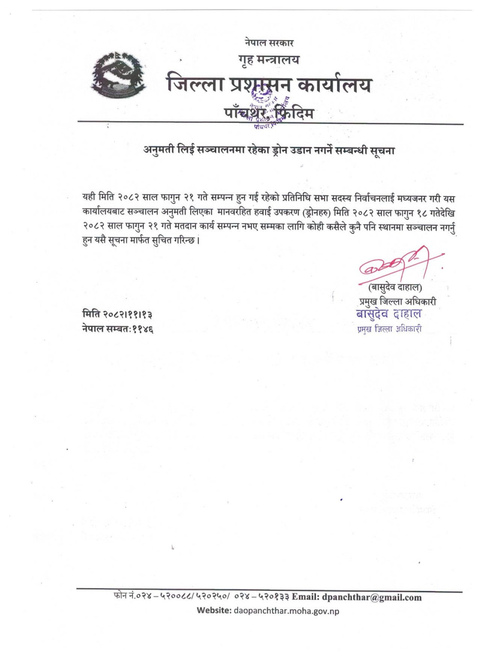 अनुमती लिई सञ्चालनमा रहेका ड्रोन उडान नगर्ने सम्बन्धी सूचना