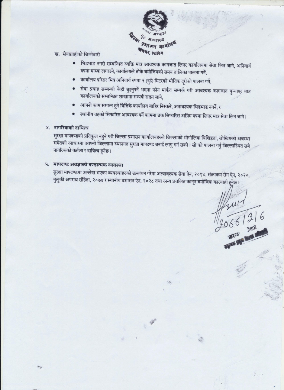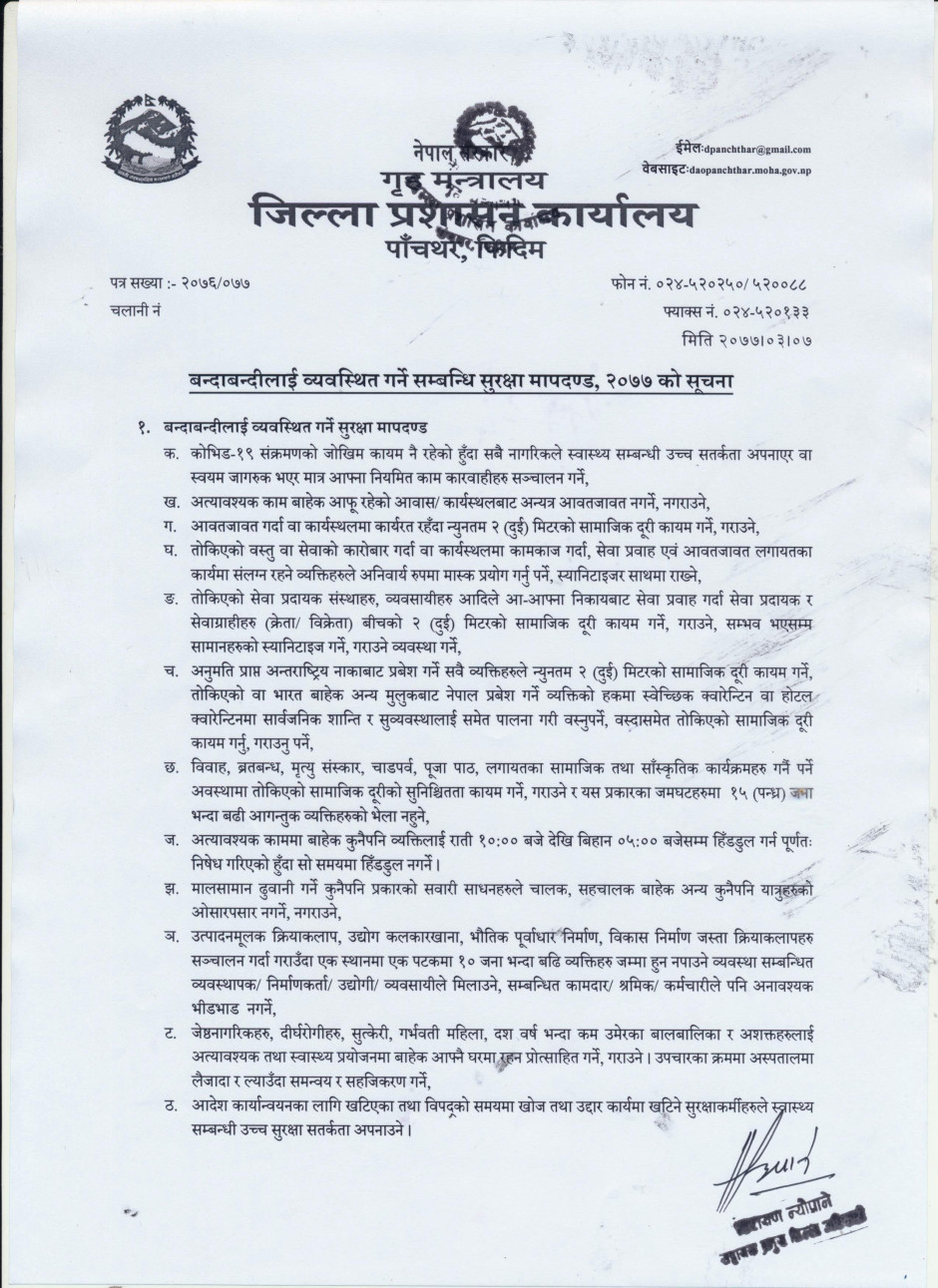 बन्दाबन्दीलाई व्यवस्थित गर्ने सम्बन्धि सुरक्षा मापदण्ड, २०७७ को सूचना