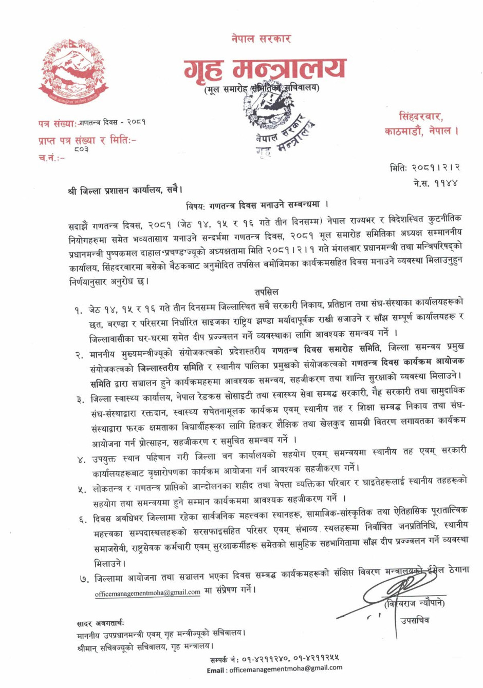 गणतन्त्र दिवस मनाउने सम्बन्धि सूचना