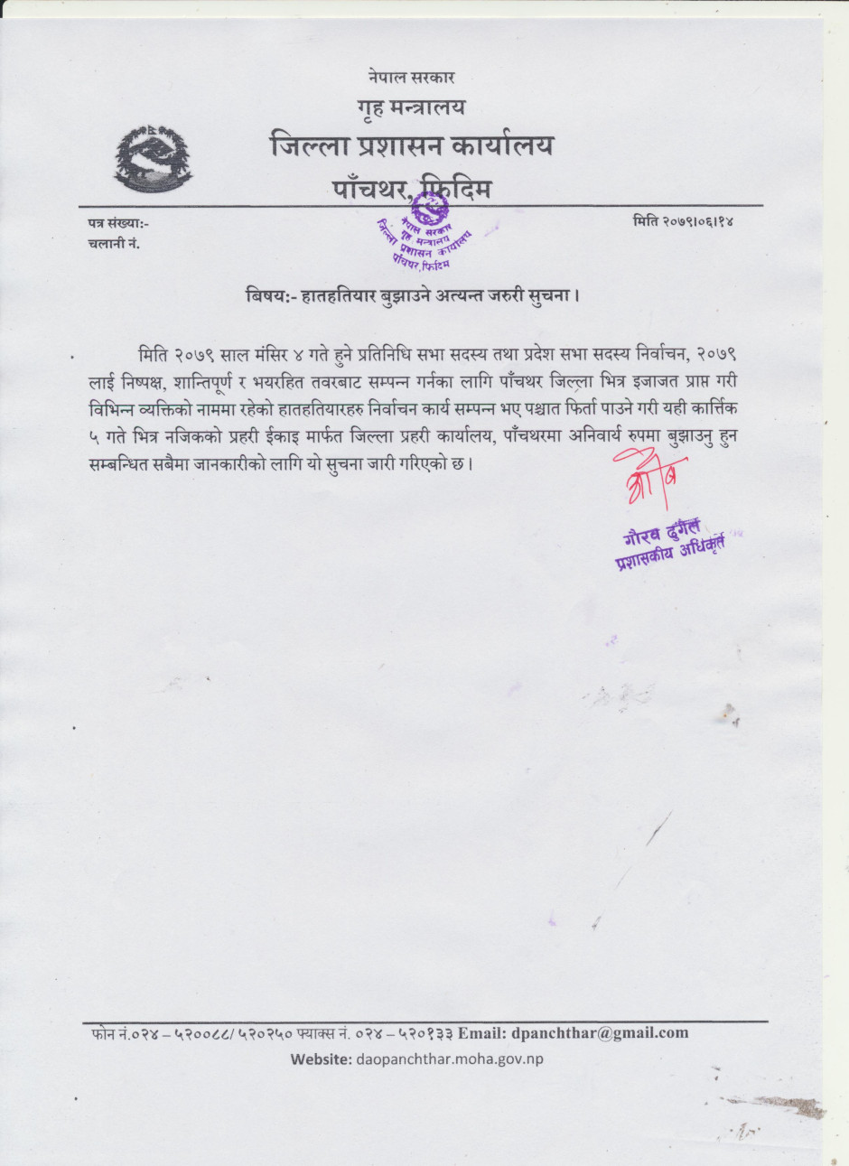 हातहतियार बुझाउने अत्यन्त जरुरी सुचना ।