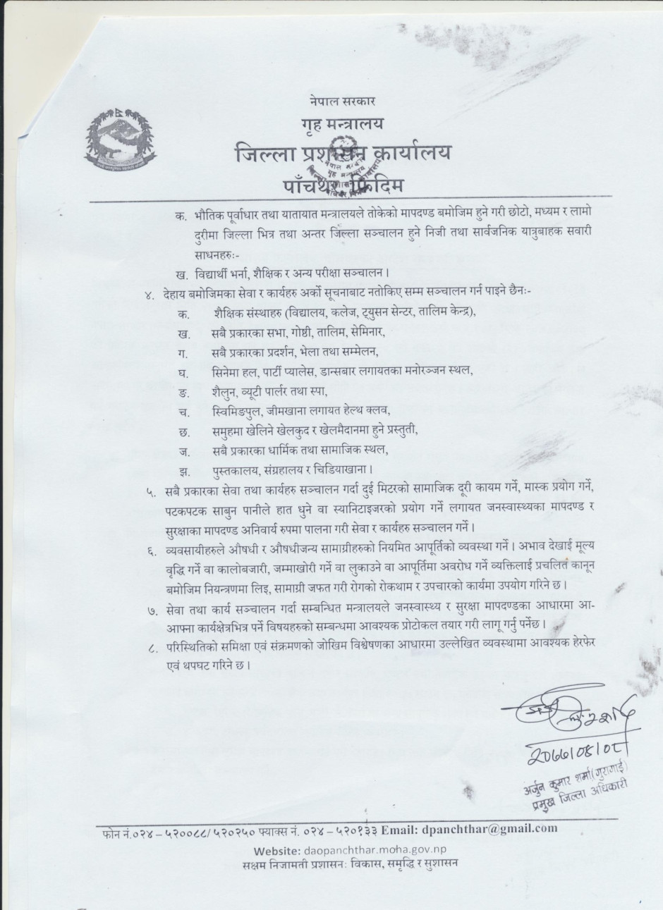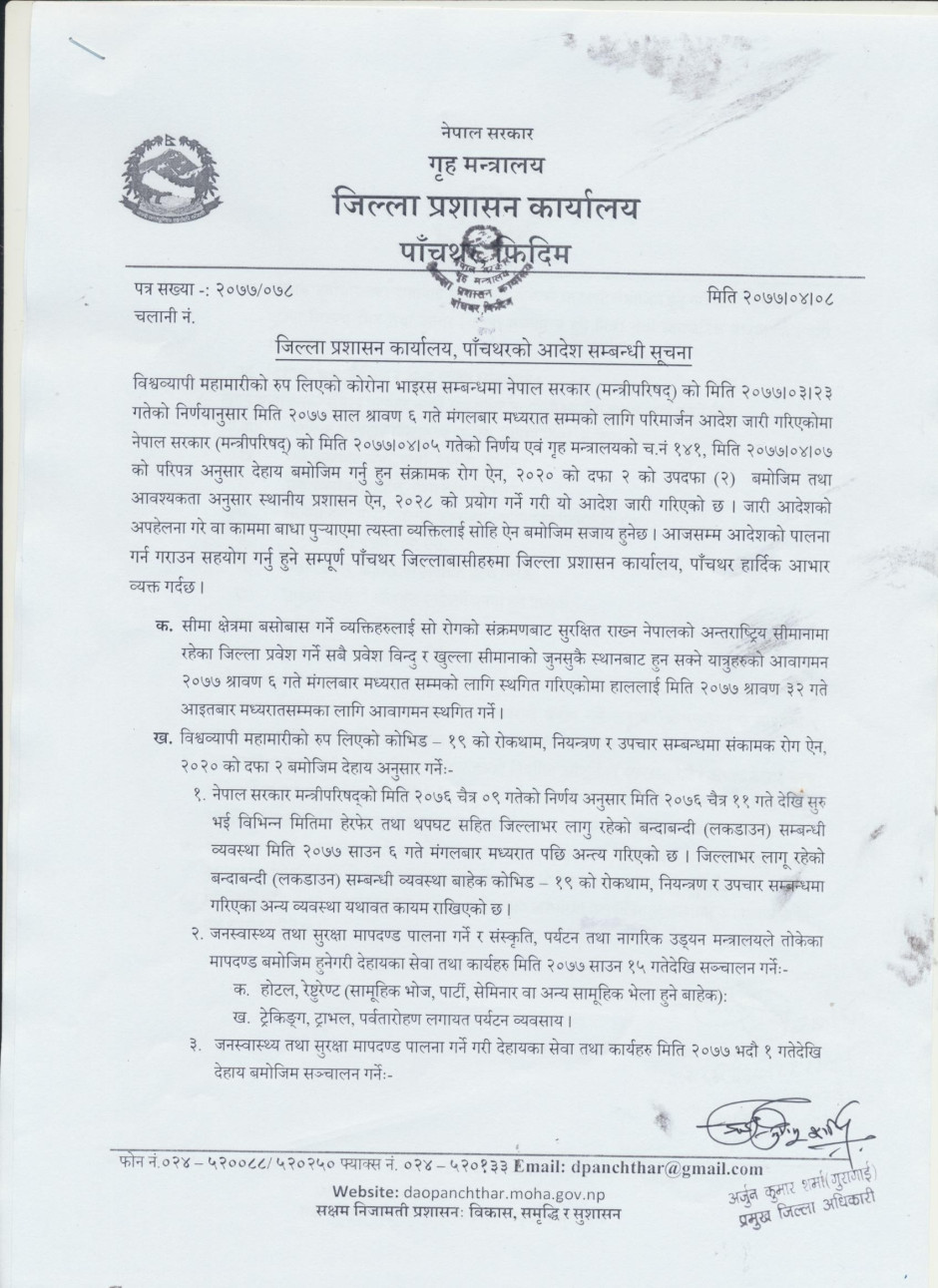 जिल्ला प्रशासन कार्यालय, पाँचथरको आदेश सम्बन्धी सूचना