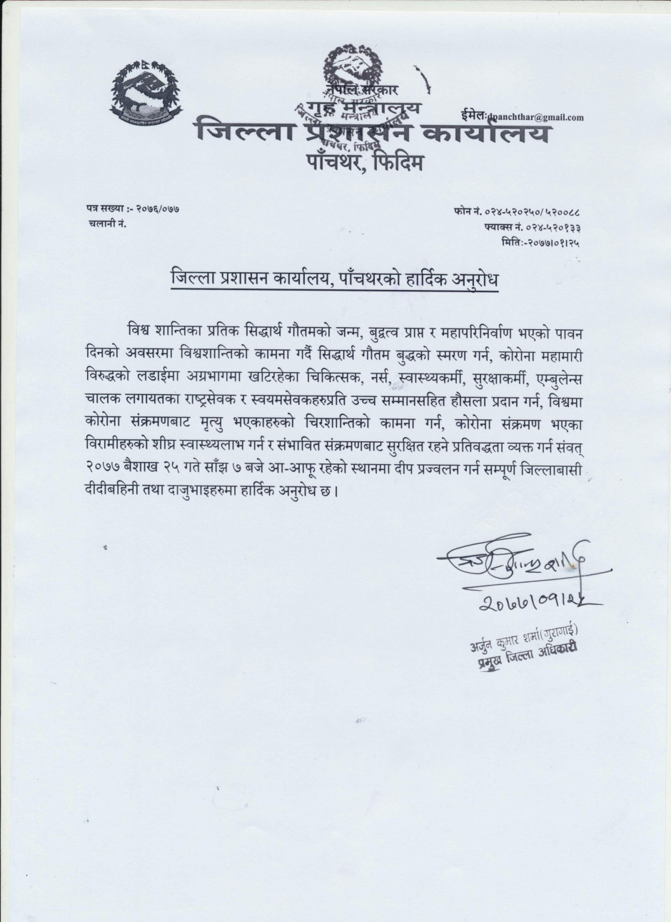 जिल्ला प्रशासन कार्यालय, पाँचथरको हार्दिक अनुरोध