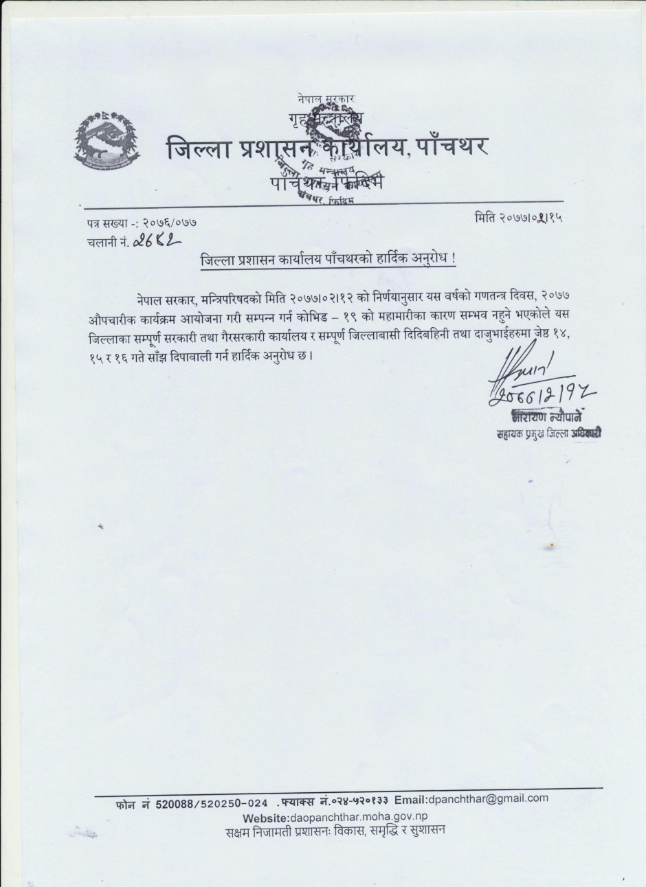 जिल्ला प्रशासन कार्यालय पाँचथरको हार्दिक अनुरोध !!!