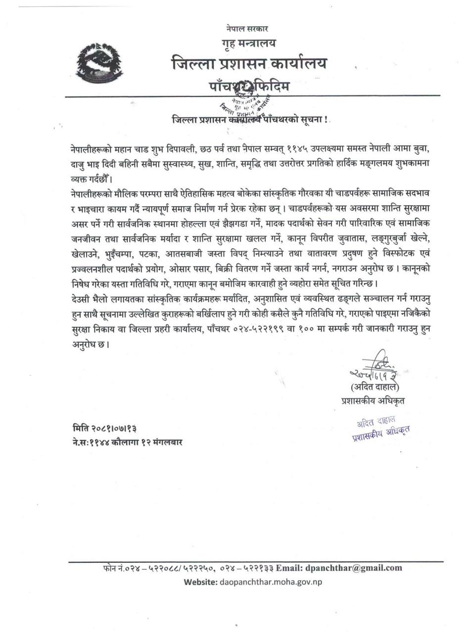 जिल्ला प्रशासन कार्यालय पाँचथरको सूचना !