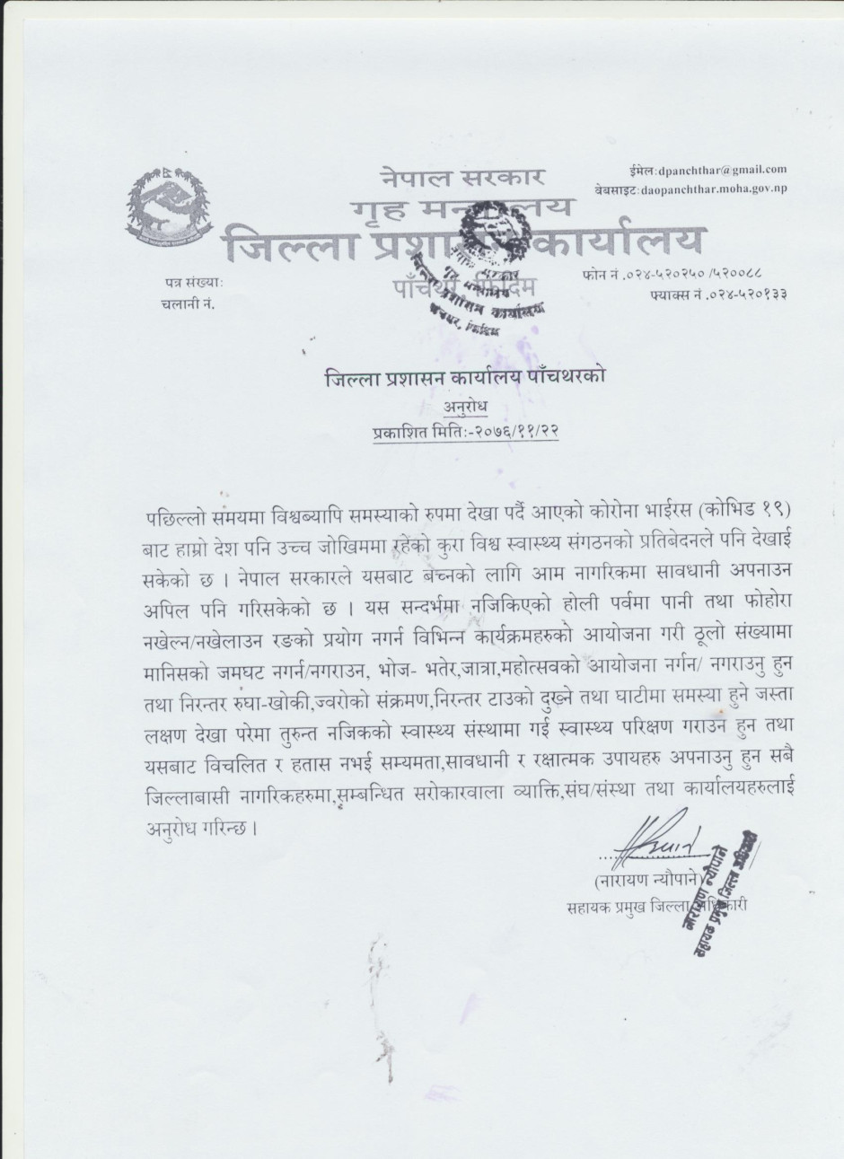अर्धवार्षिक बुलेटिन २०७६, जिल्ला प्रशासन कार्यालय, पाँचथर