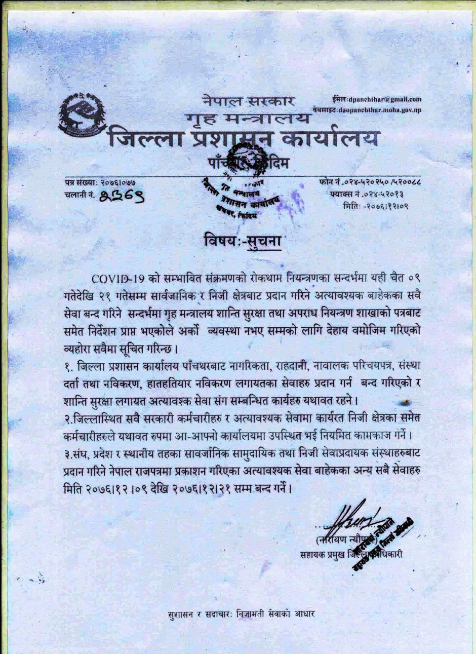 जिल्ला प्रशासन कार्यालय, पाँचथरको सूचनाको हक सम्बन्धी त्रैमासिक प्रकासन, (२०७६ माघ देखि चैत्रसम्म)