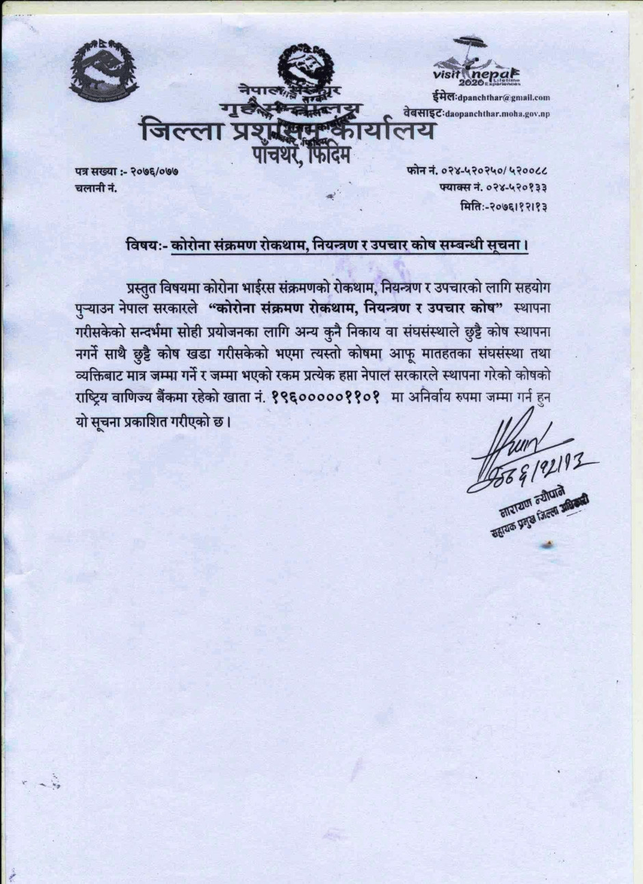 कोरोना संक्रमण रोकथाम, नियन्त्रण र उपचार कोष सम्बन्धी सूचना