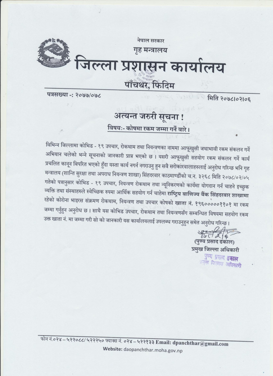 © सर्वाधिकार सुरक्षित जिल्ला प्रशासन कार्यालय, पाँचथर .