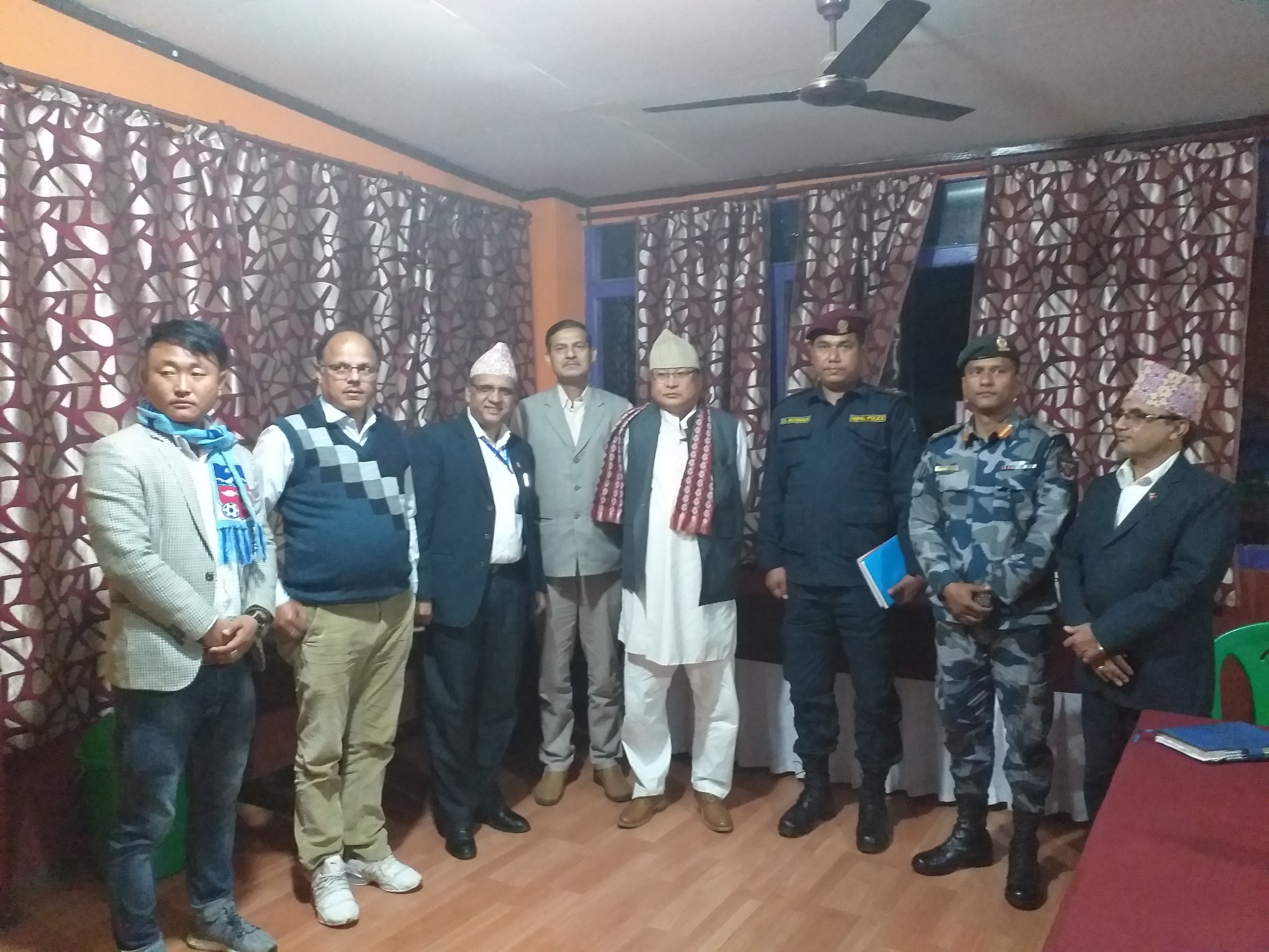 मिति २०७५।१२।१४ गते प्रदेश नं. १ का माननीय प्रदेश प्रमुख प्रा.डा. गोविन्दबहादुर तुम्वाहाङज्यूसँग जिल्लाको कार्यक्रममा सरिक