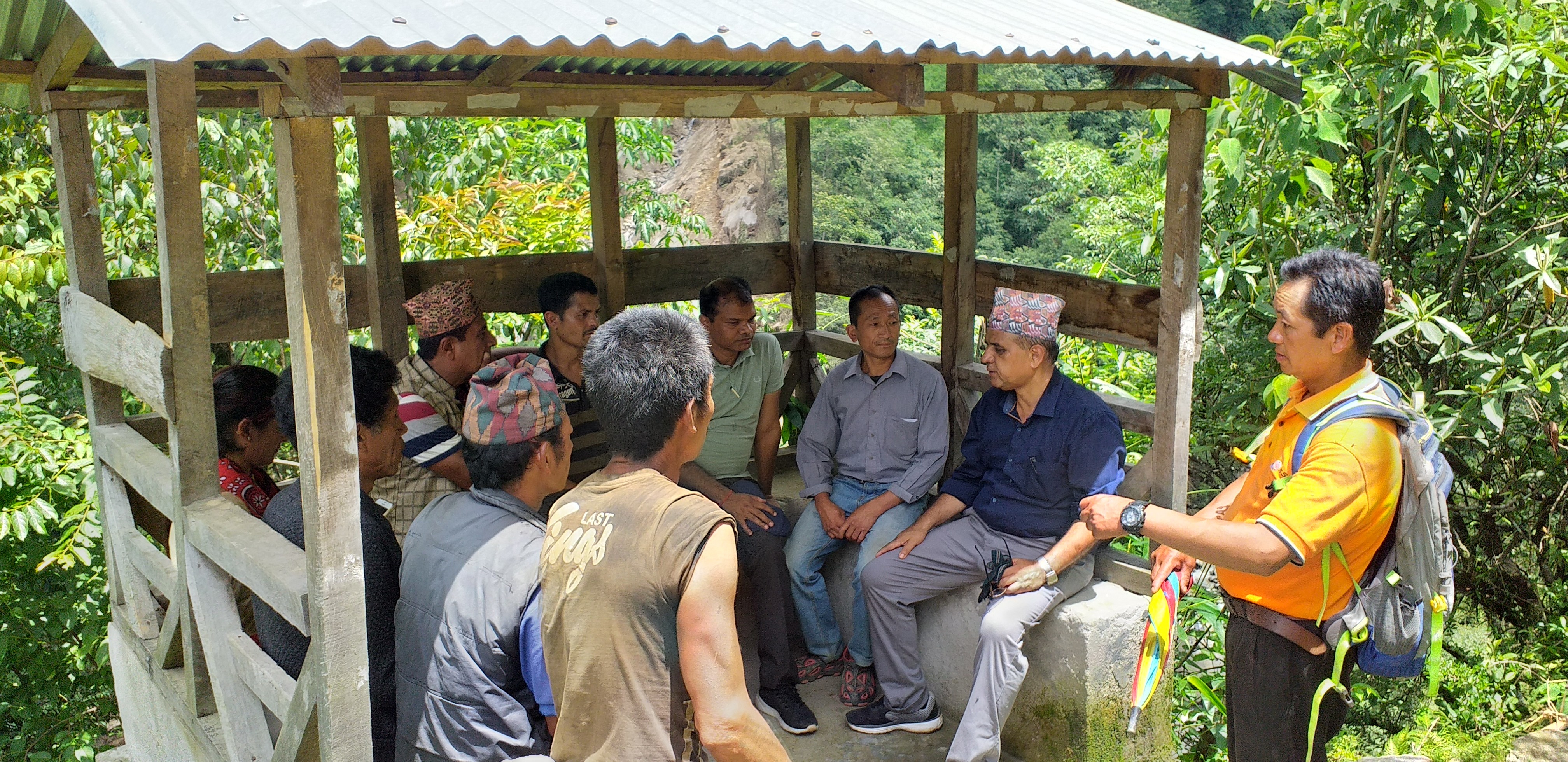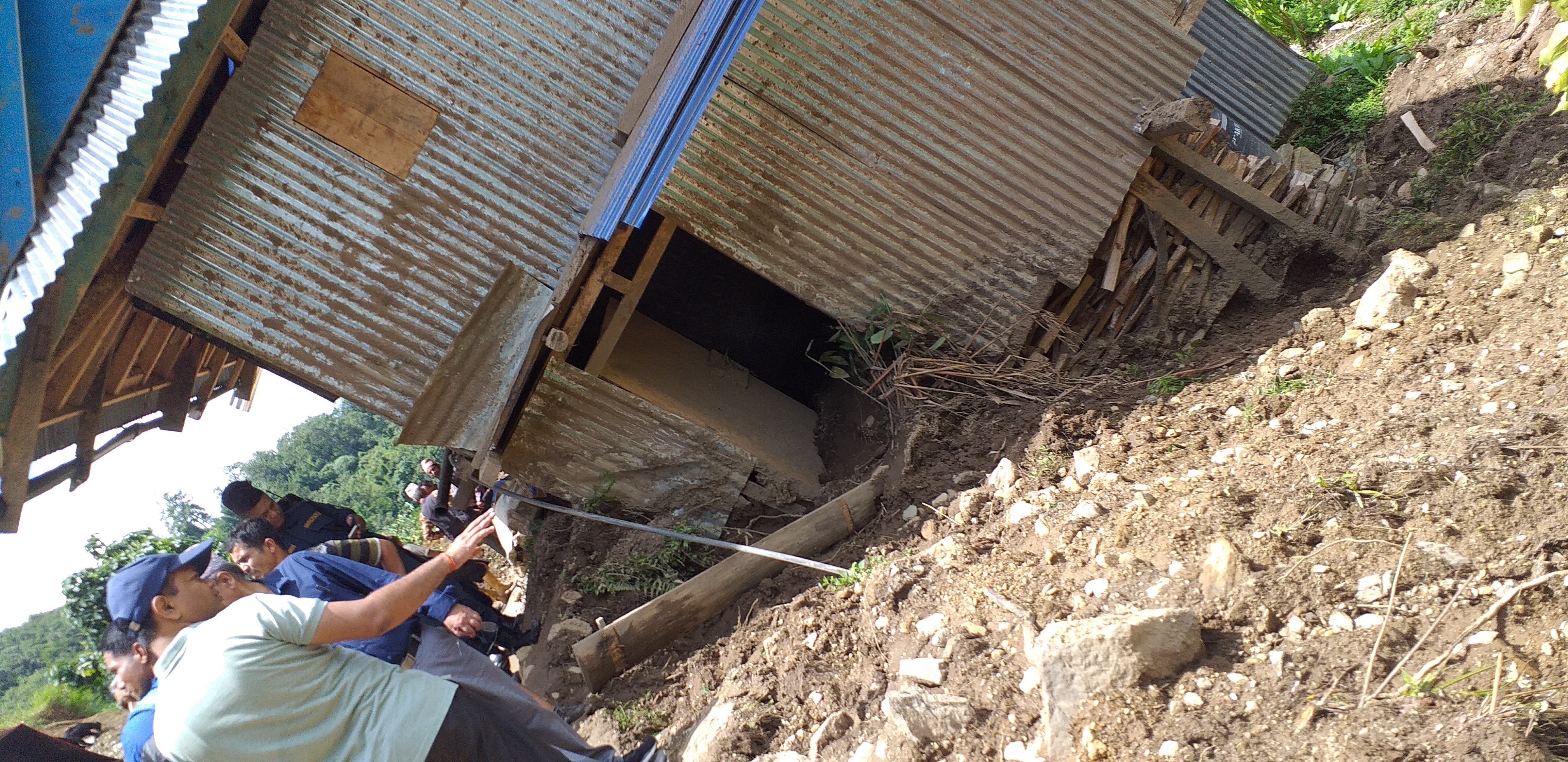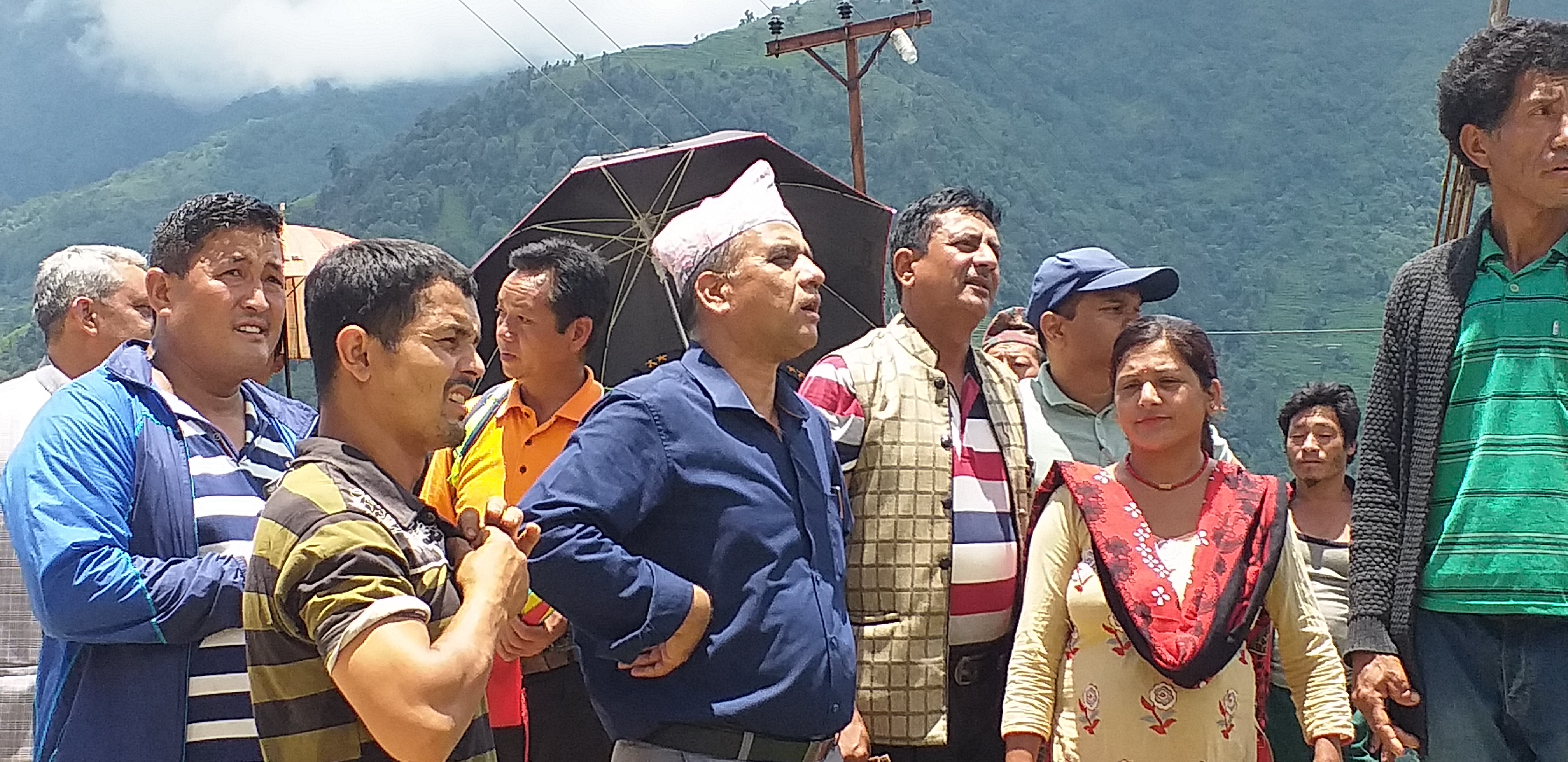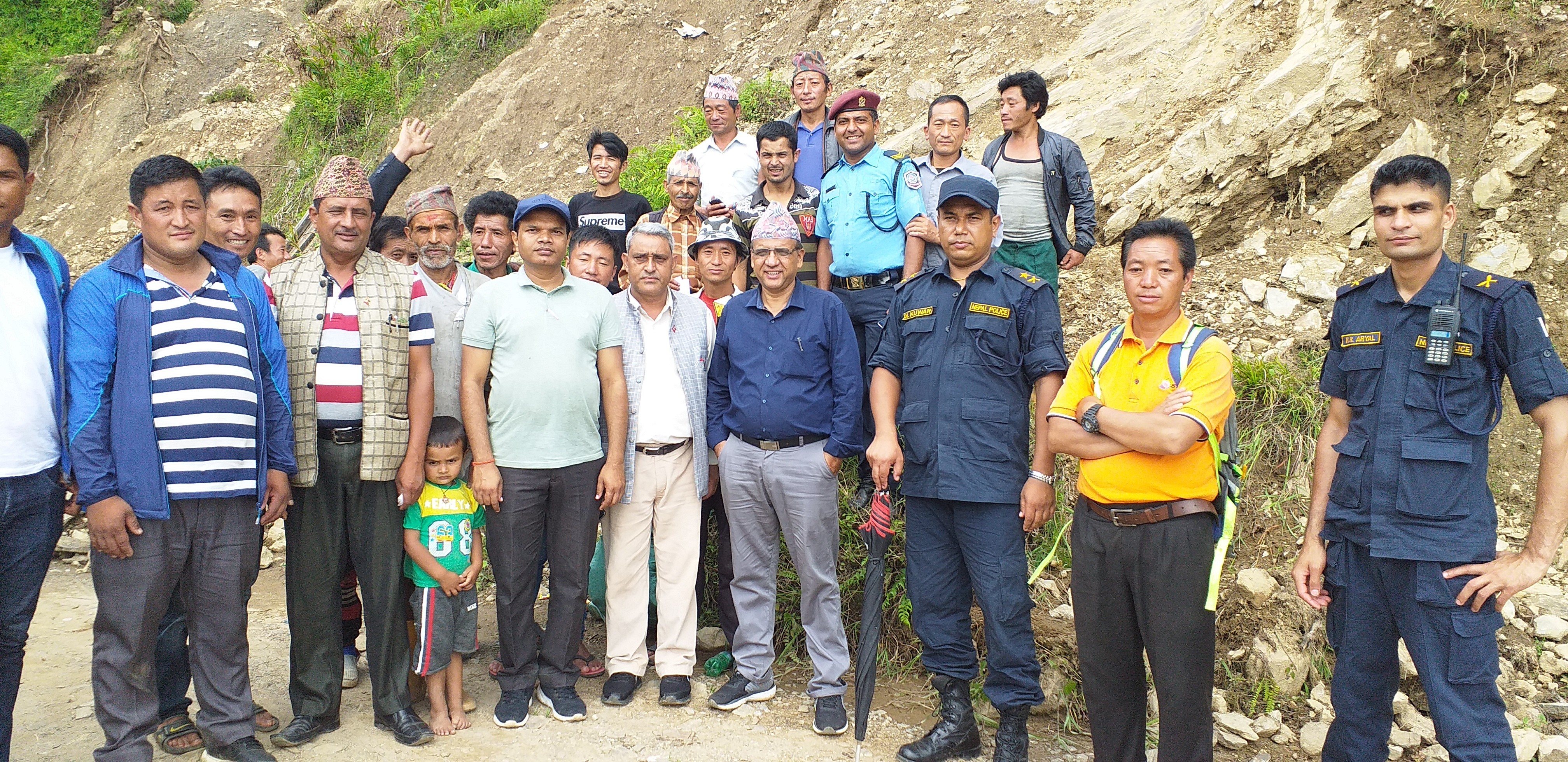 मिति २०७६।०३।१० गते याङवरक गाउँपालिका वडा नं. २ को विभिन्न स्थानहरुमा गएको पहिरोले बगाएको तथा जोखीममा रहेका घरहरुको स्थलगत निरीक्षण एवं पीडितहरुसँग छलफल अन्तरक्रिया गर्नुहुदै प्रमुख जिल्ला अधिकारी, याङवरक गा.पा.अध्यक्ष एवं सुरक्षा निकाय लगायतको टोली