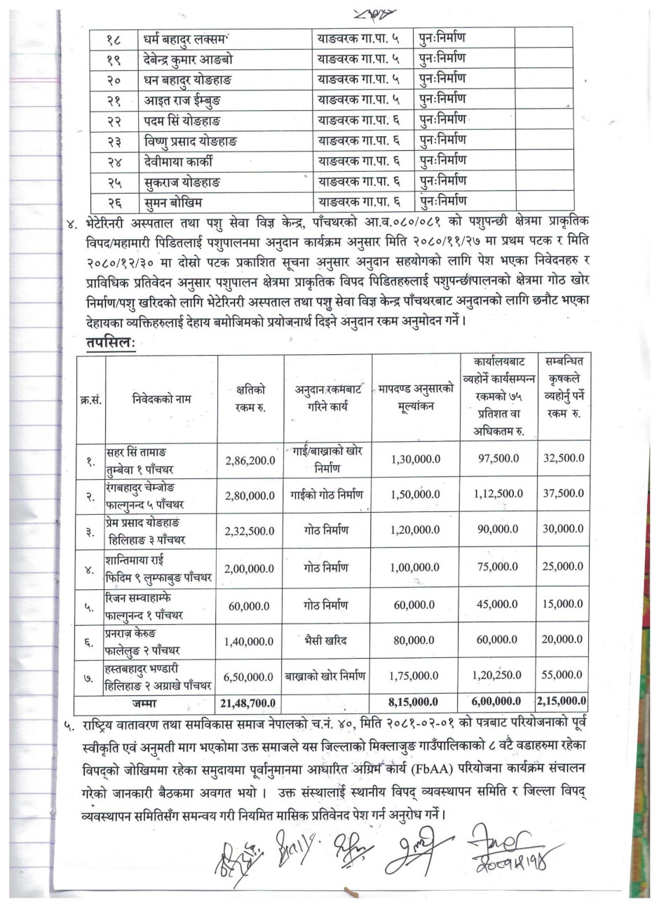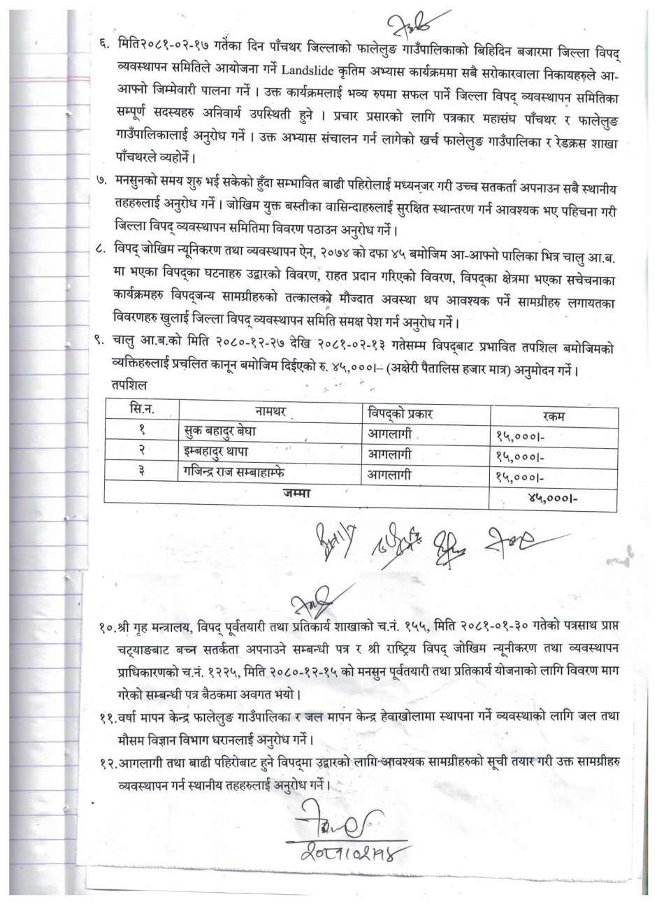 मिति २०८१ साल जेष्ठ १४ गते प्रमुख जिल्ला अधिकारी एवं जिल्ला विपद् व्यवस्थापन समितिका अध्यक्ष श्री मेखबहादुर मंग्रातीको अध्यक्षतामा बसेको जिल्ला विपद् व्यवस्थापन समितिको बैठकको निर्णयहरु