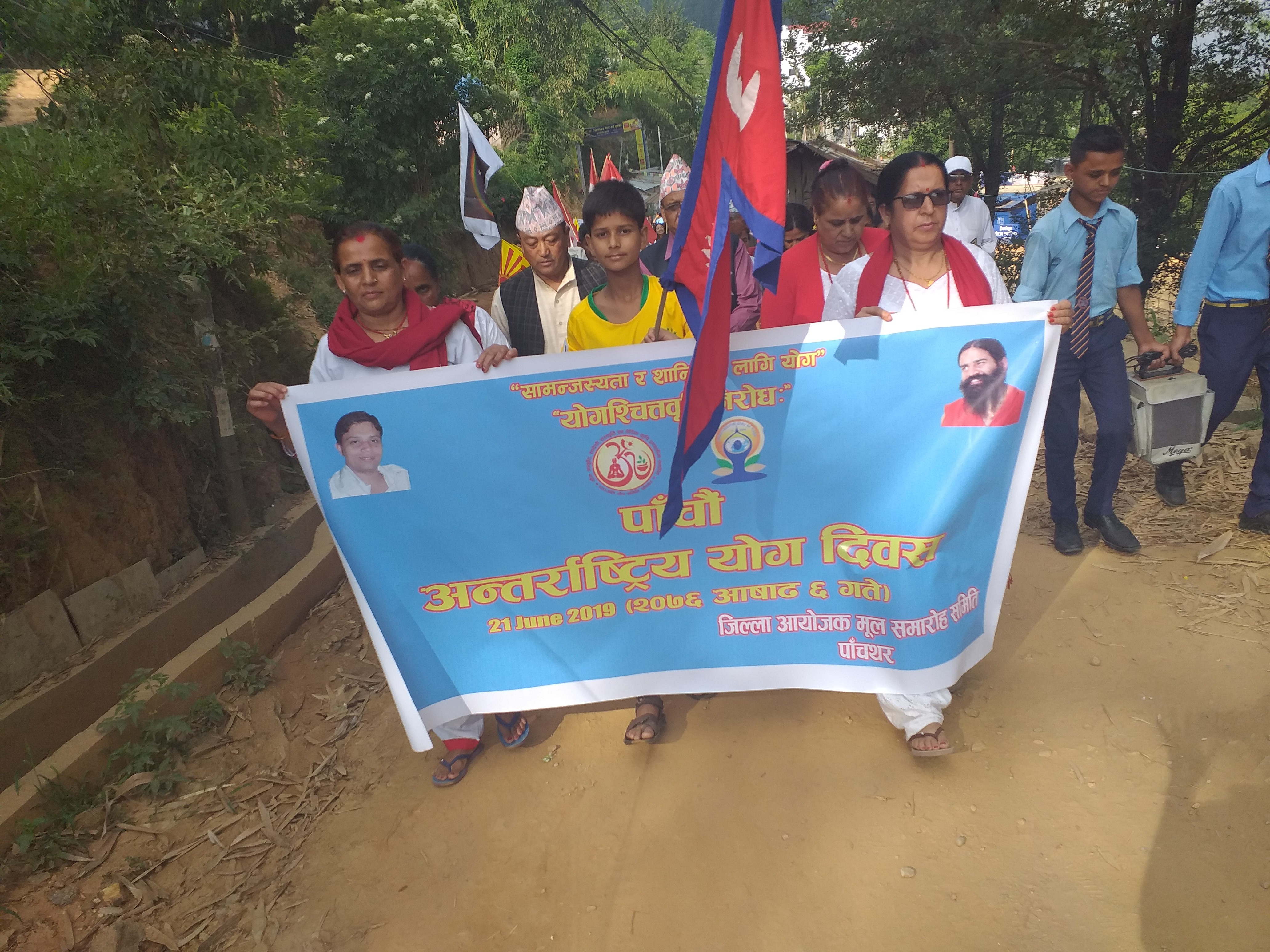 पाँचौ अन्तराष्ट्रिय योग दिवश मिति २०७६।०३।०६ गते व्यापक जनसहभागितामा प्रभात फेरि कार्यक्रमसहित मनाइयो।
