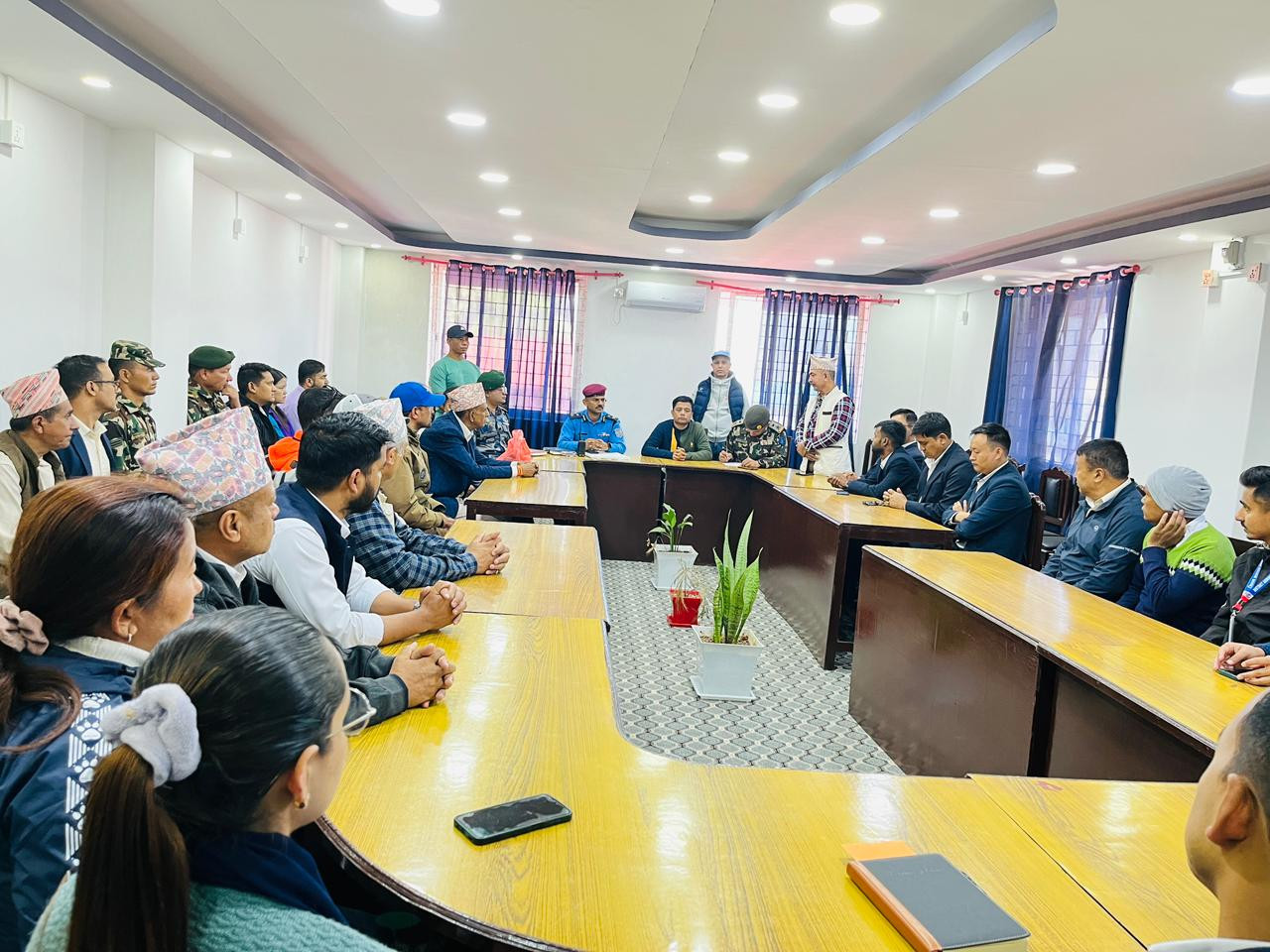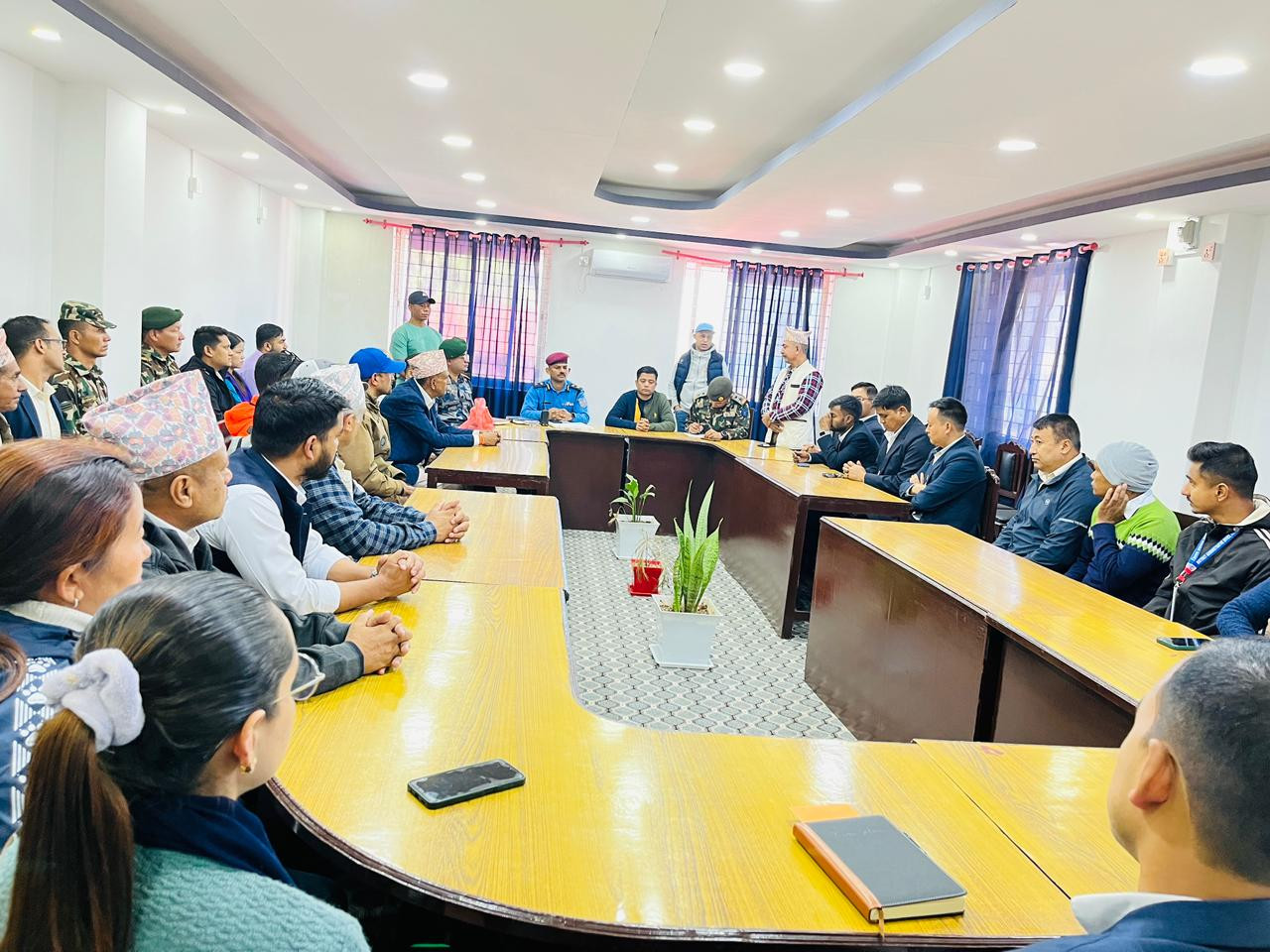 आज मिति २०८२ चैत्र २५ गते प्रमुख जिल्ला अधिकारी श्री बासुदेव दाहालको अध्यक्षतामा भएको लागु औषध नियन्त्रणका लागि सुरक्षा निकाय र सरोकारवाला निकायबीच भएको समन्वय बैठक बसेको ।