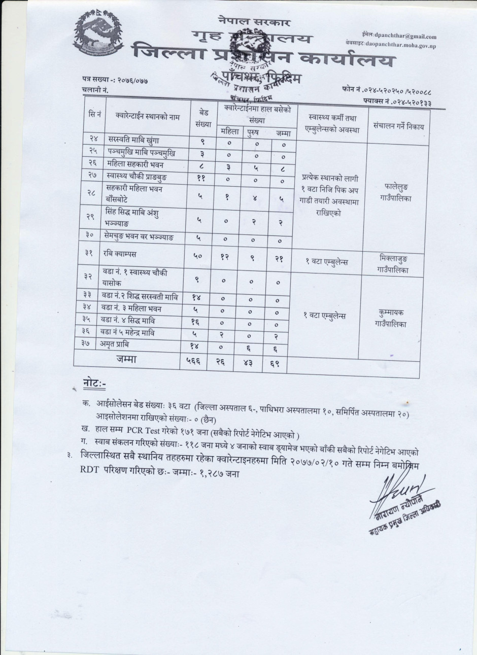 जिल्ला प्रशासन कार्यालय, पाँचथरको सूचनाको हक सम्बन्धी त्रैमासिक प्रकासन, (२०७६ माघ देखि चैत्रसम्म)