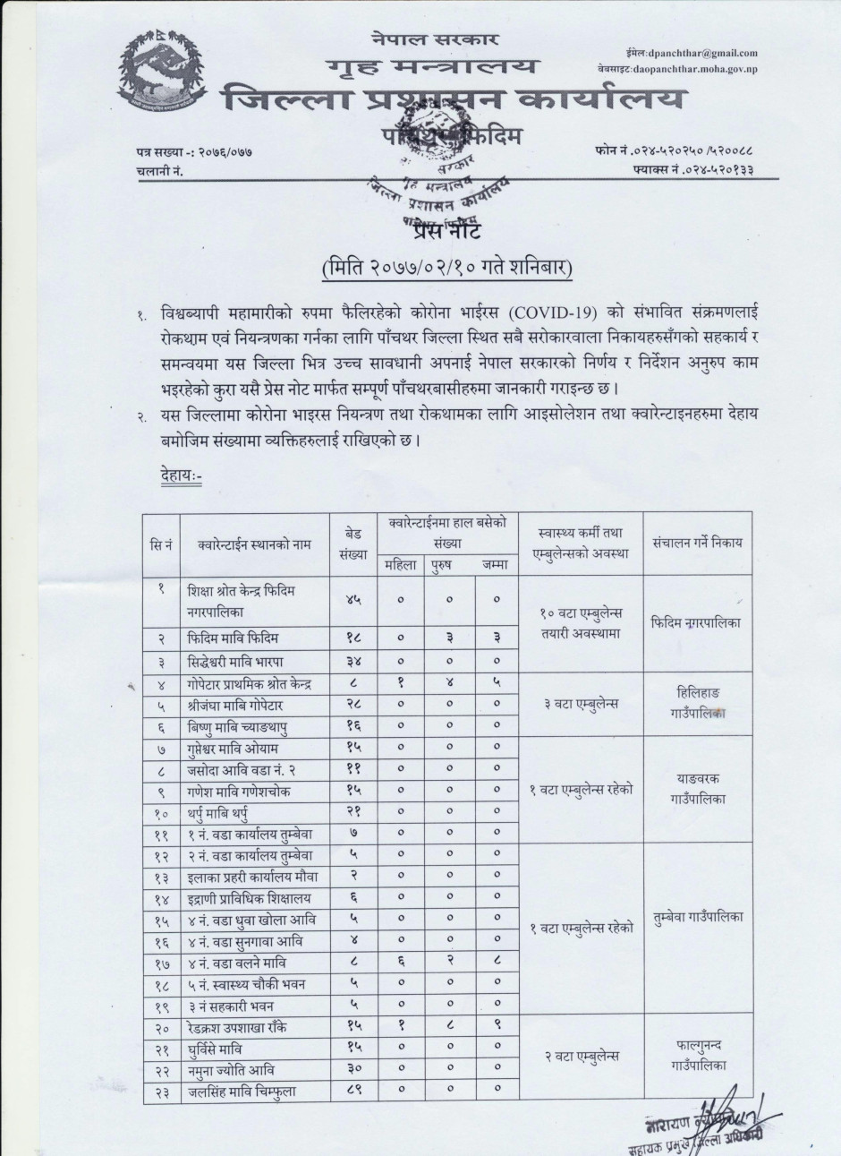 अर्धवार्षिक बुलेटिन २०७६, जिल्ला प्रशासन कार्यालय, पाँचथर