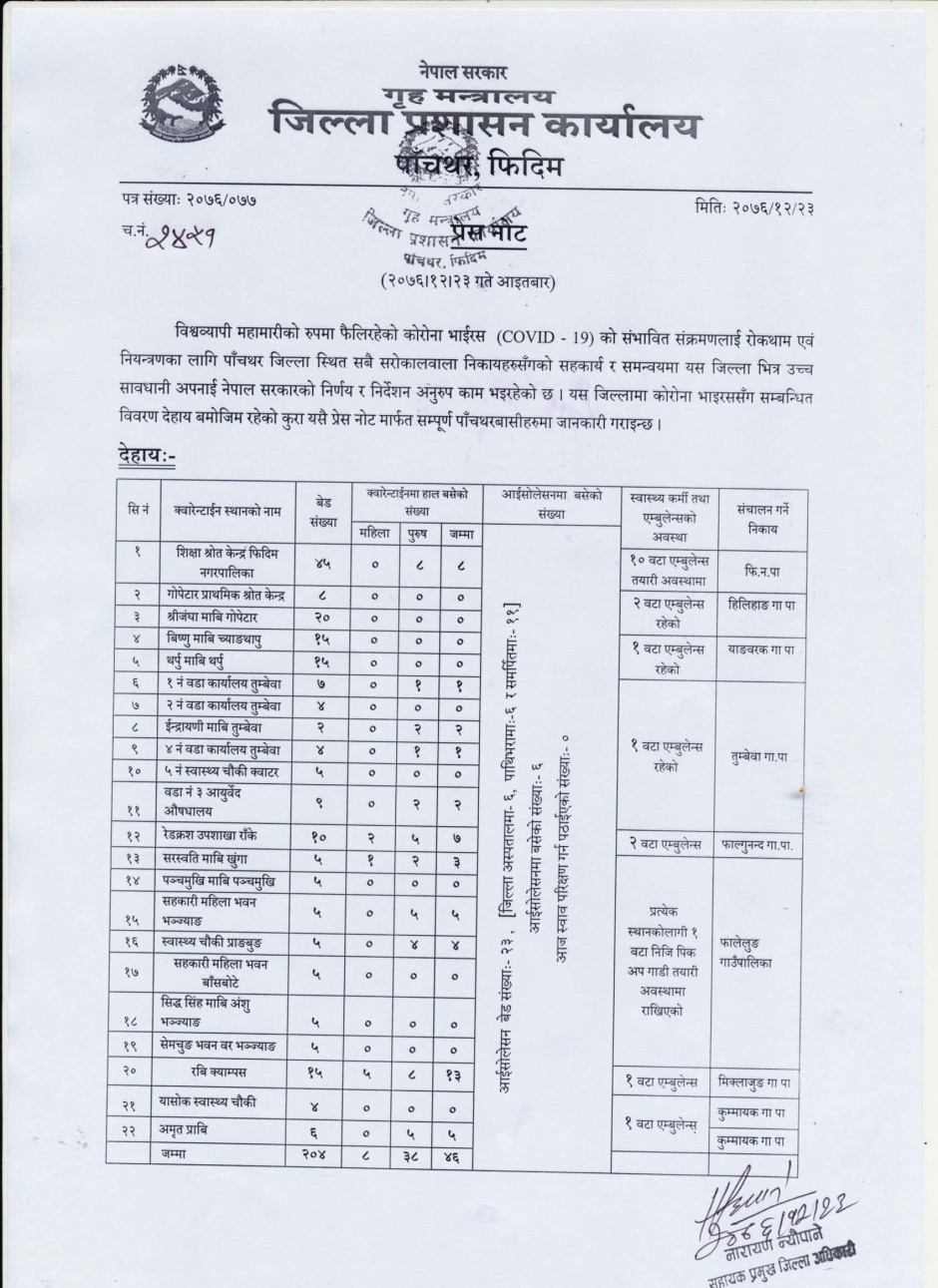 अर्धवार्षिक बुलेटिन २०७६, जिल्ला प्रशासन कार्यालय, पाँचथर