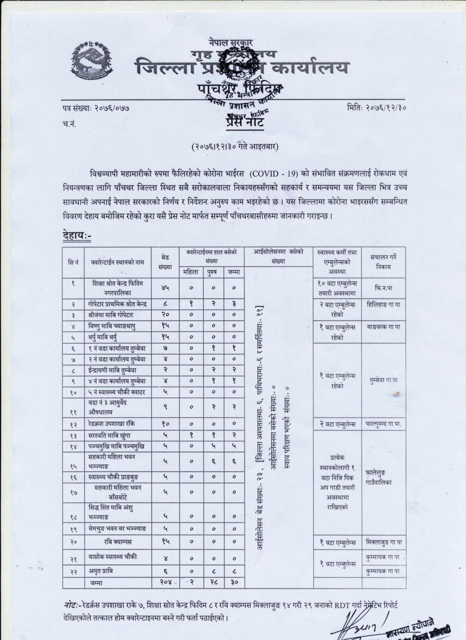 प्रेस नोट, मिति २०७६।१२।३० आइतबार