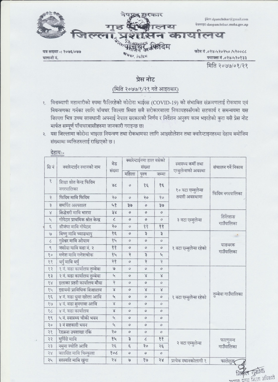 प्रेस नोट, मिति २०७७।०१।२१ आइतबार