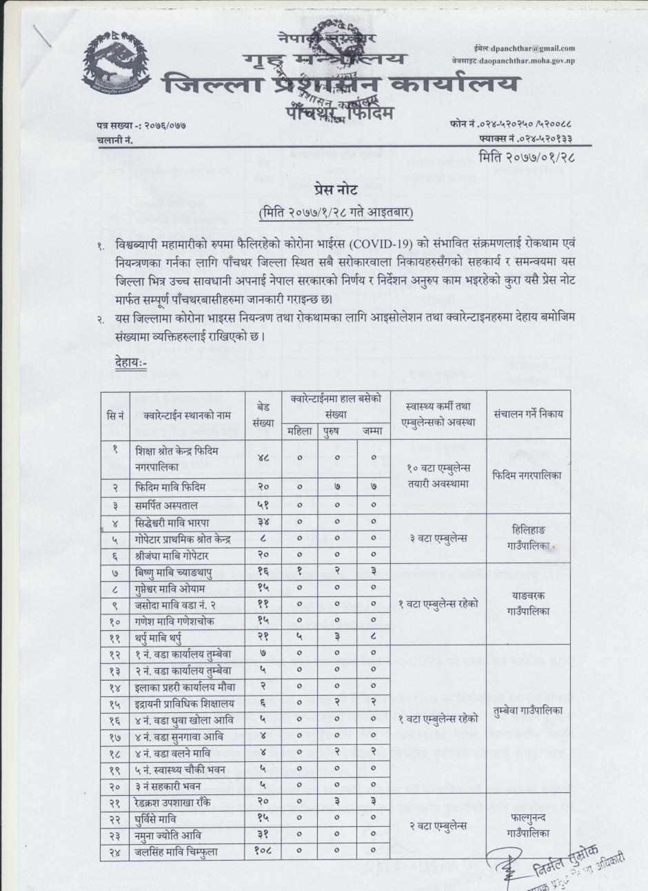प्रेस नोट, मिति २०७७।०१।२८ आइतबार