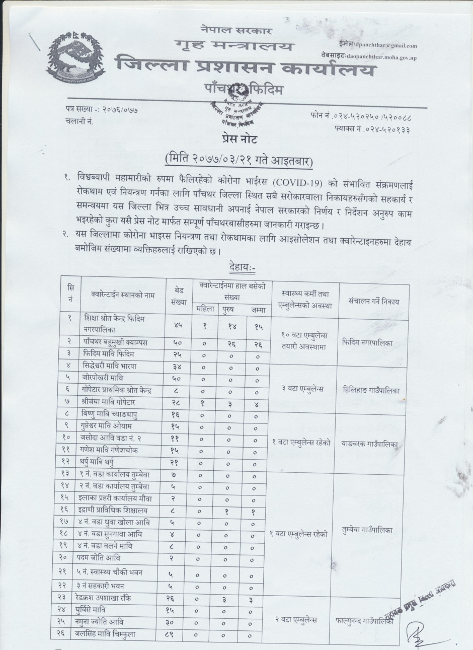 प्रेस नोट, मिति २०७७।०३।२१ आइतबार