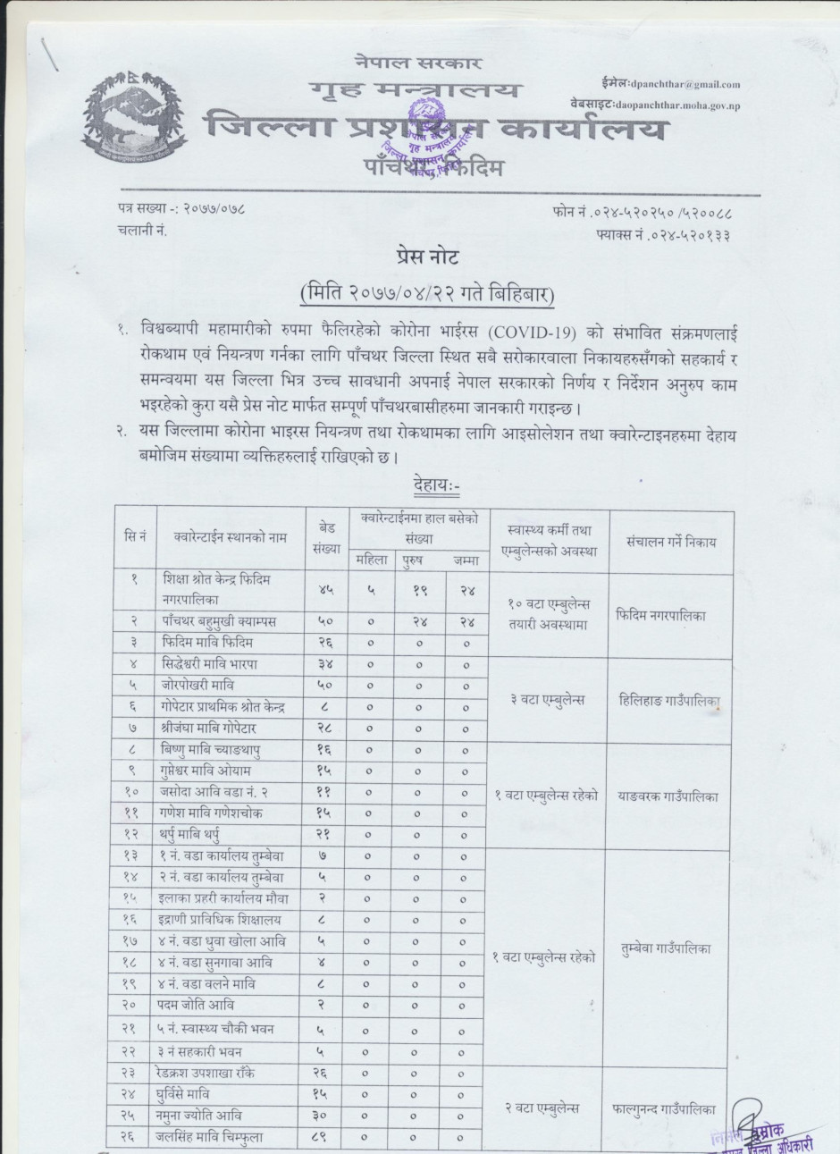 प्रेस नोट, मिति २०७७।०४।२२ बिहिबार