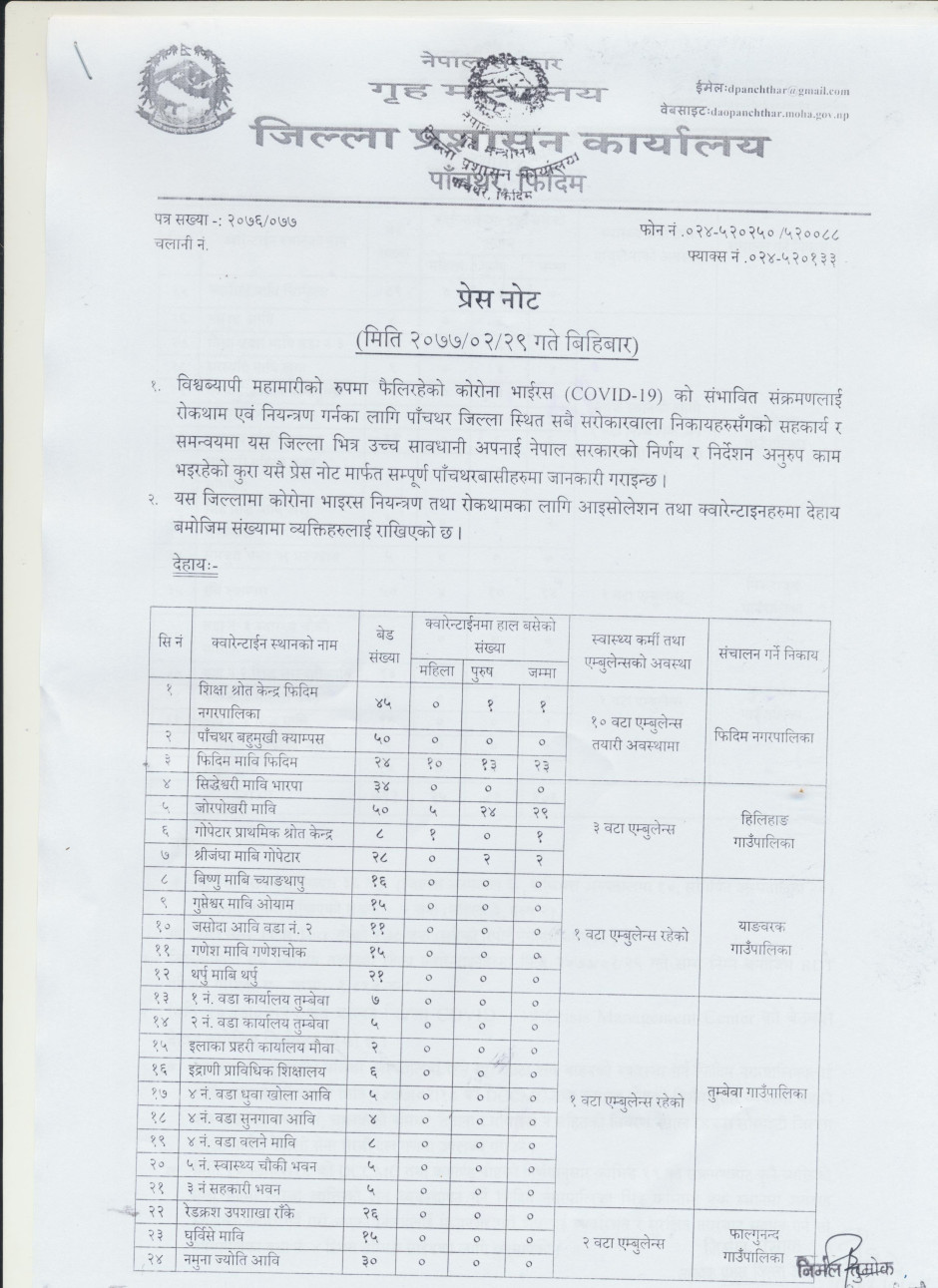 प्रेस नोट, मिति २०७७।०२।२९ बिहिबार