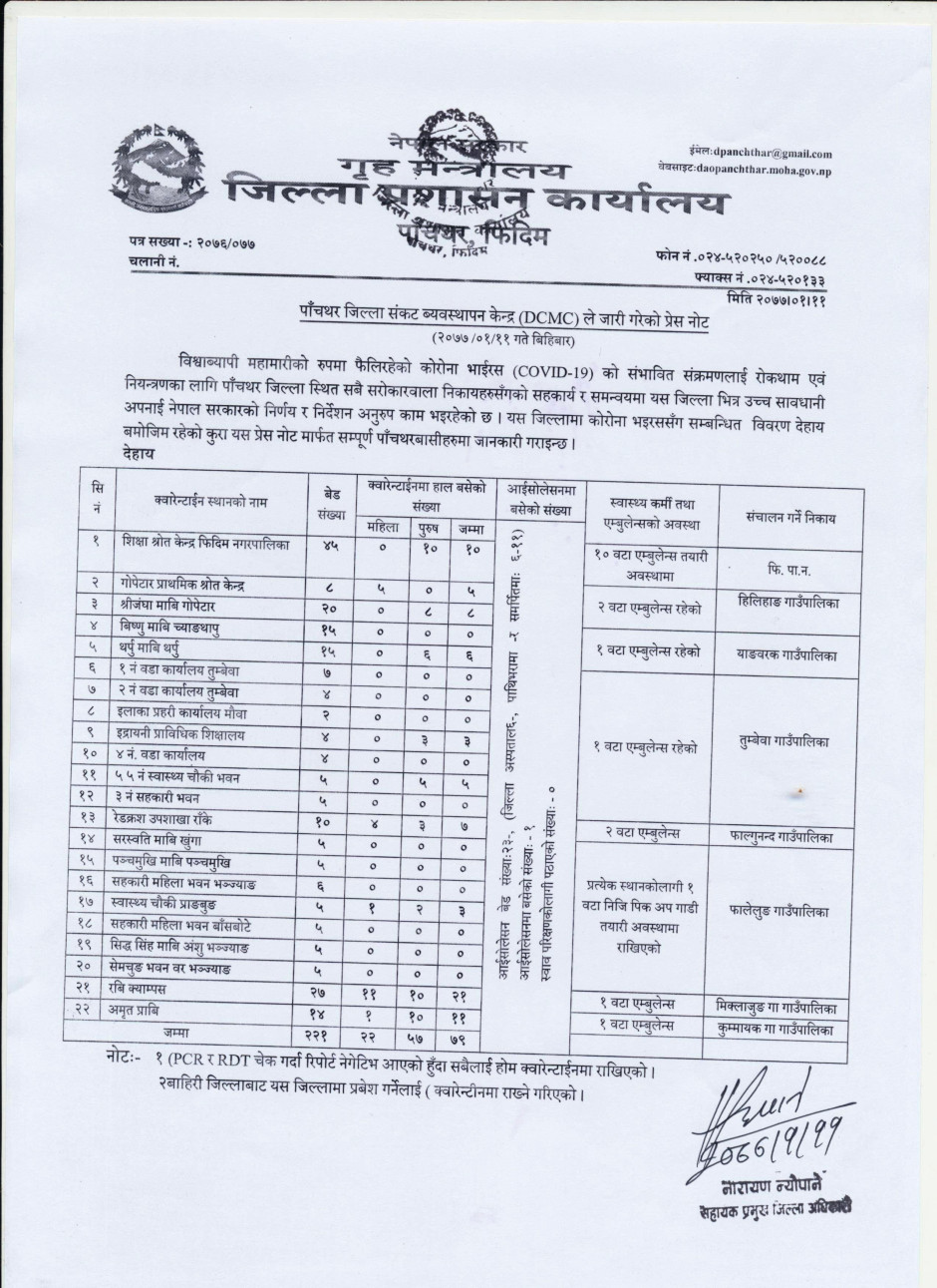 प्रेस नोट मिति २०७७।०१।११ बिहिबार