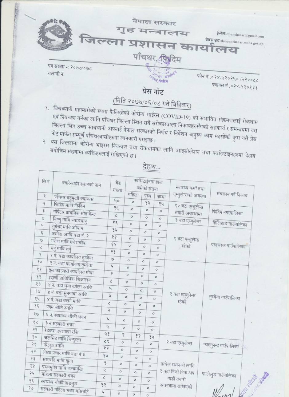 © सर्वाधिकार सुरक्षित जिल्ला प्रशासन कार्यालय, पाँचथर .