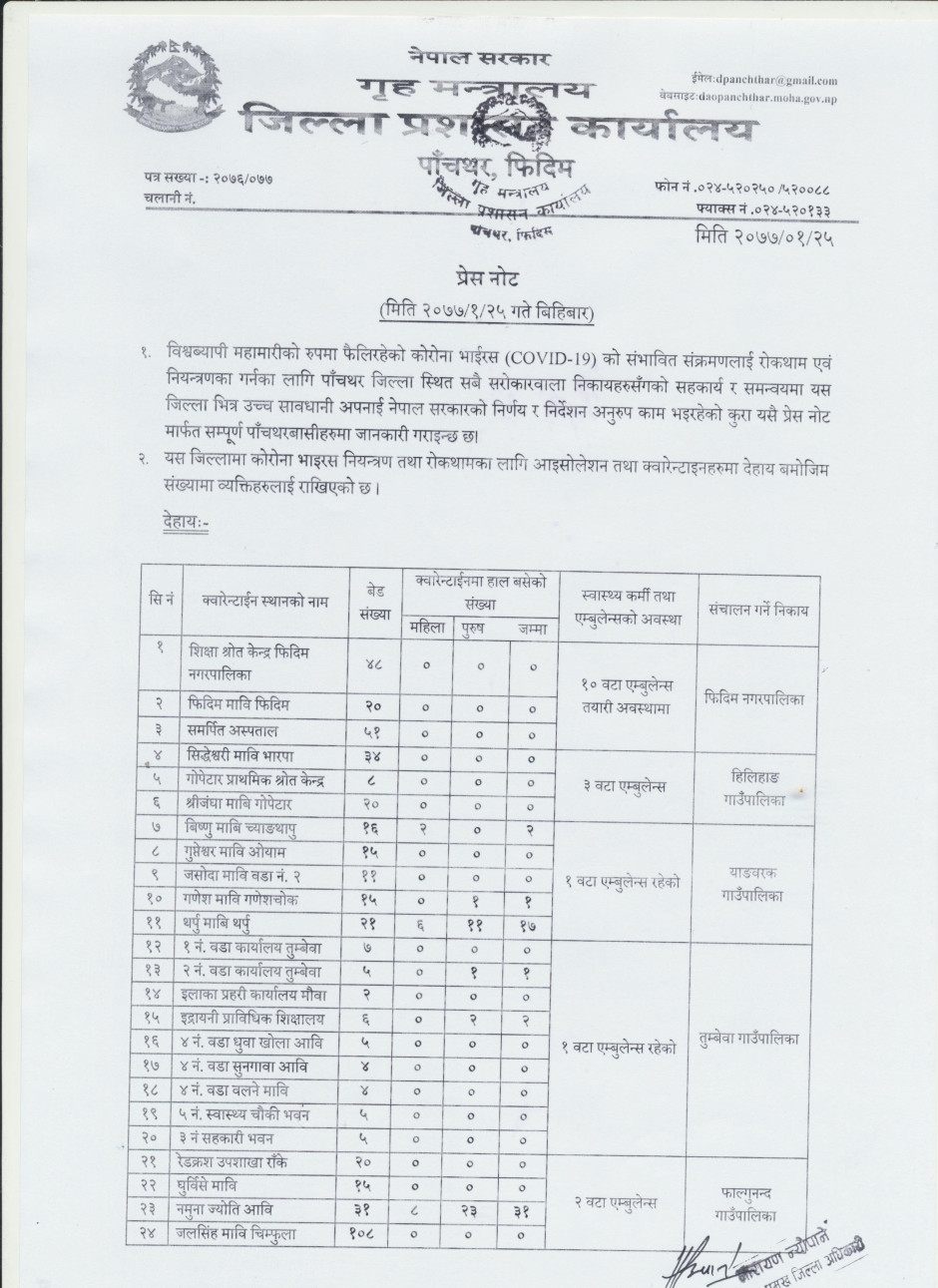 प्रेस नोट, मिति २०७७।०१।२५ बिहिबार