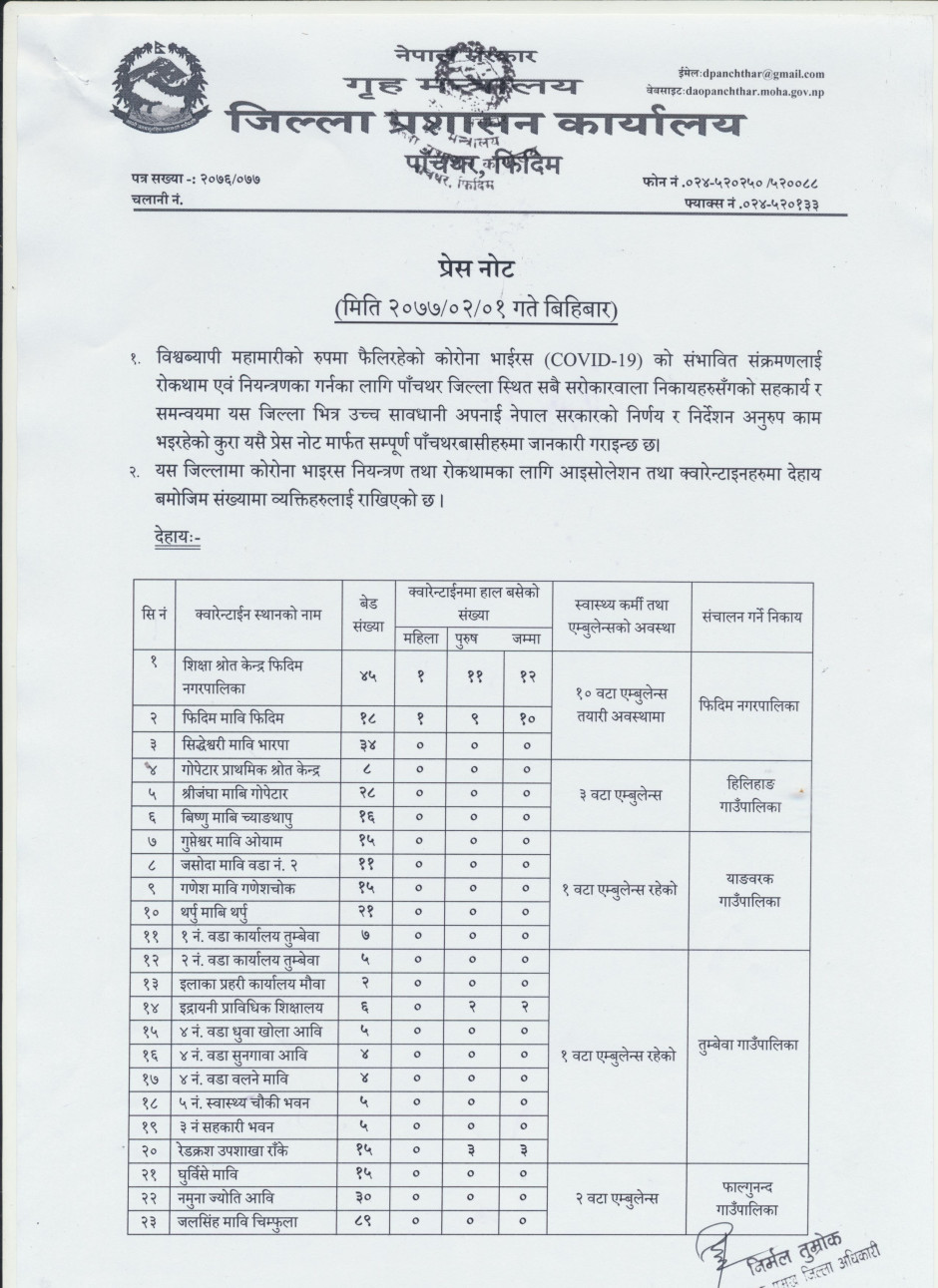 प्रेस नोट, मिति २०७७।०२।०१ बिहिबार