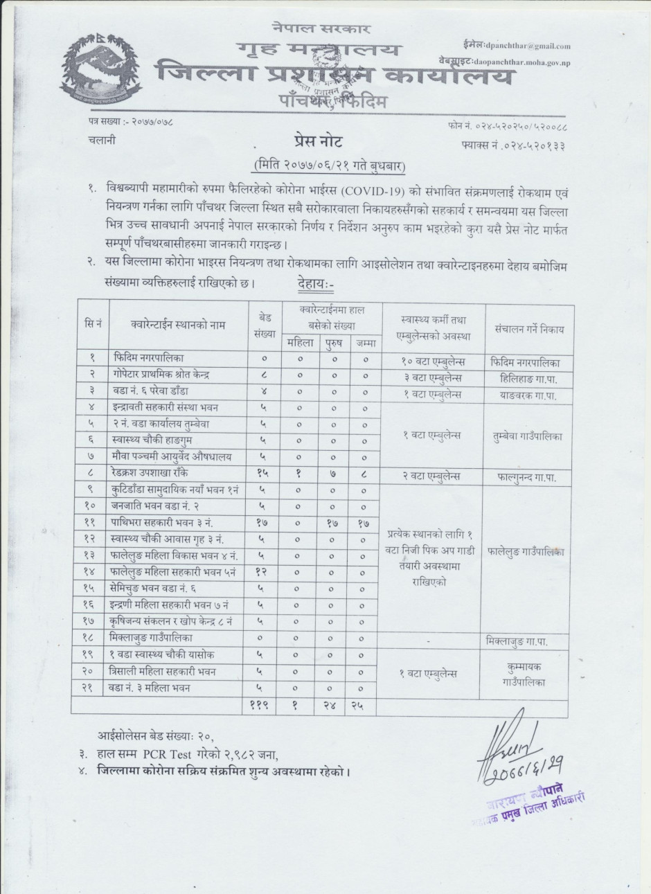 प्रेस नोट, मिति २०७७।०६।२१ बुधबार