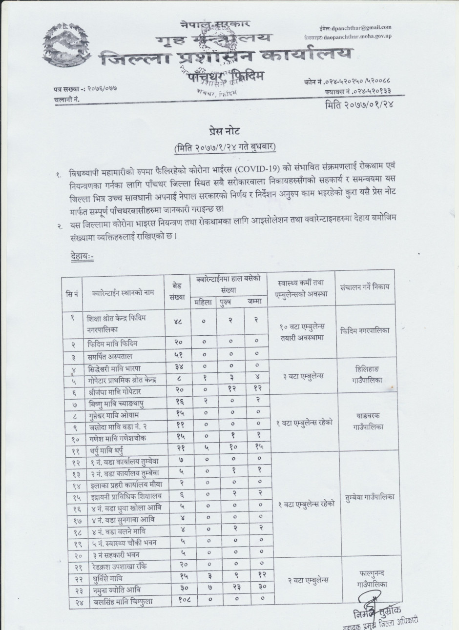 प्रेस नोट, मिति २०७७।०१।२४ बुधबार