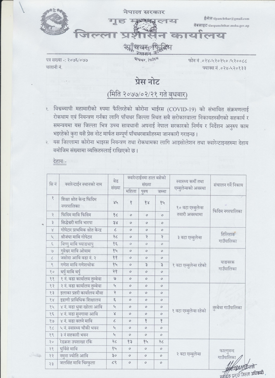 प्रेस नोट, मिति २०७७।०२।२१ बुधबार
