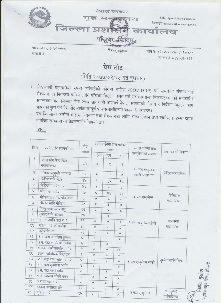 प्रेस नोट, मिति २०७७।०२।२८ बुधबार