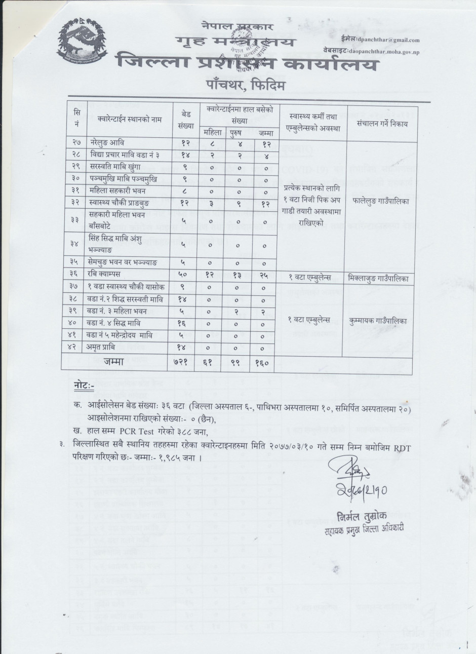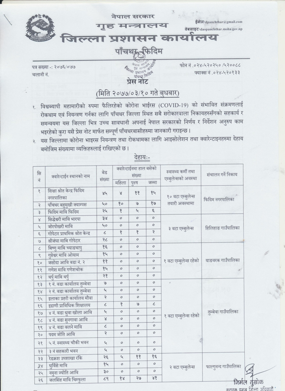 अर्धवार्षिक बुलेटिन २०७६, जिल्ला प्रशासन कार्यालय, पाँचथर