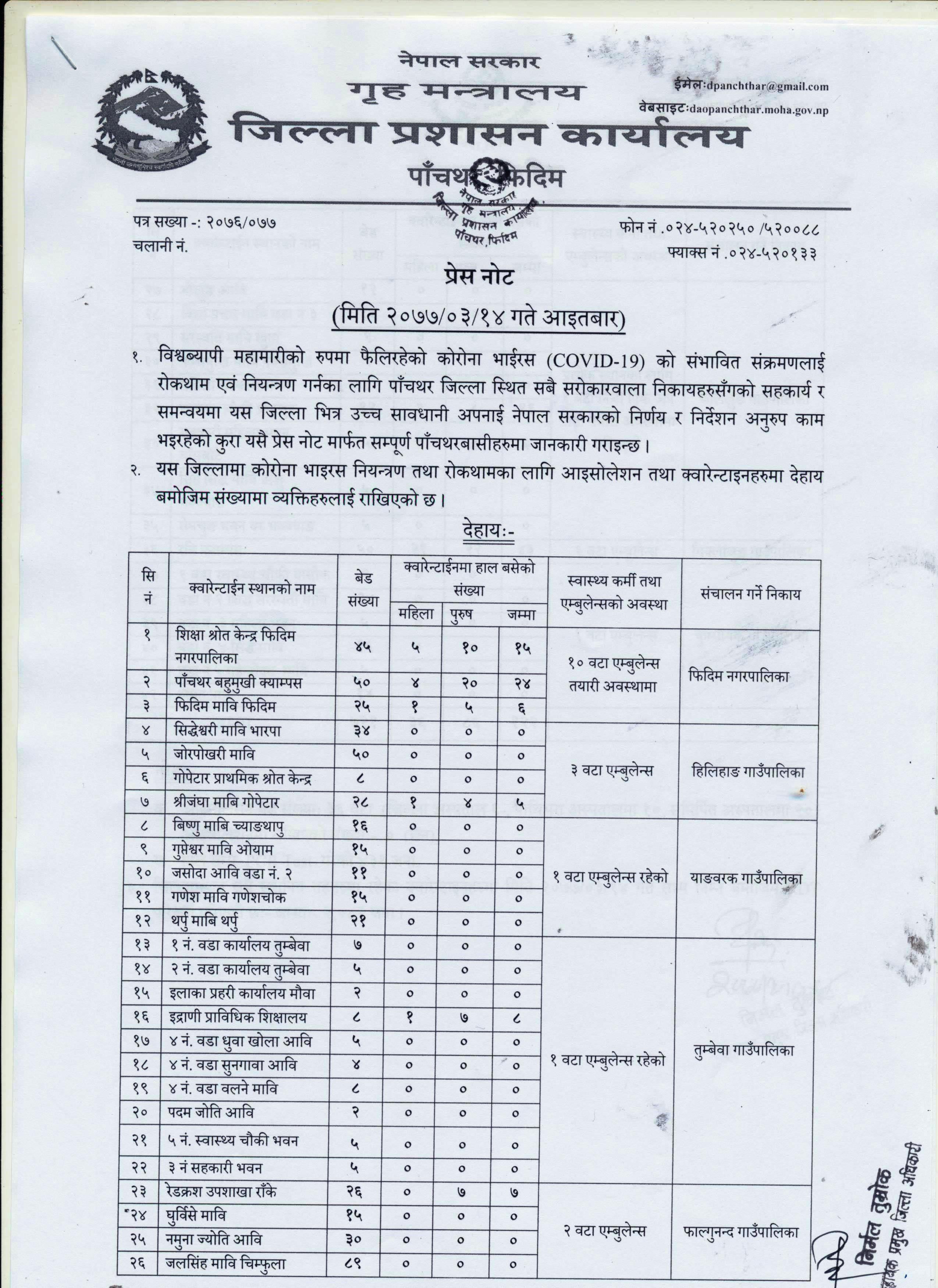 प्रेस नोट, मिति २०७७।०३।१४ गते आइतबार