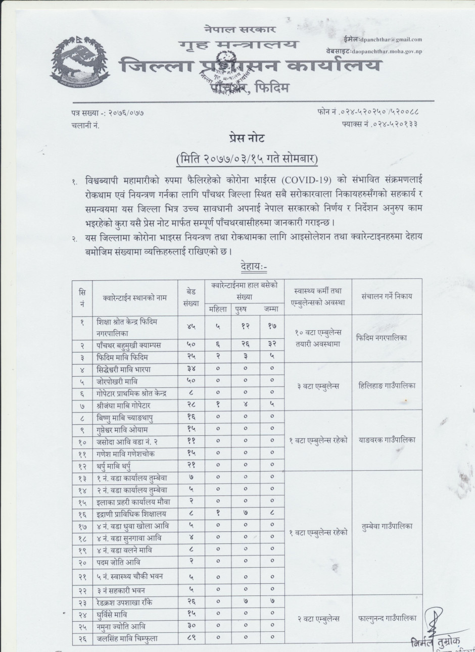प्रेस नोट, मिति २०७७।०३।१५ गते सोमबार