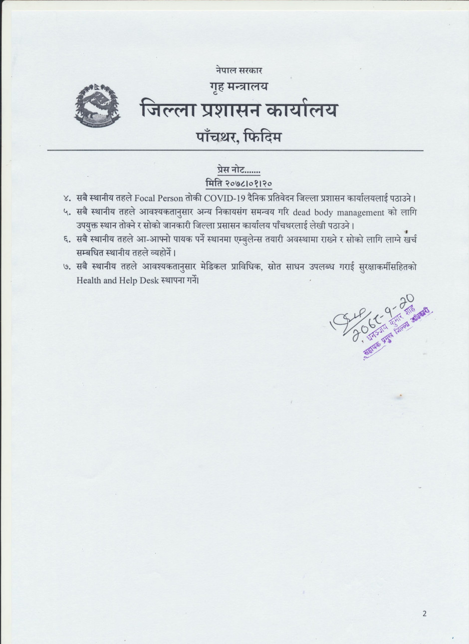 © सर्वाधिकार सुरक्षित जिल्ला प्रशासन कार्यालय, पाँचथर .