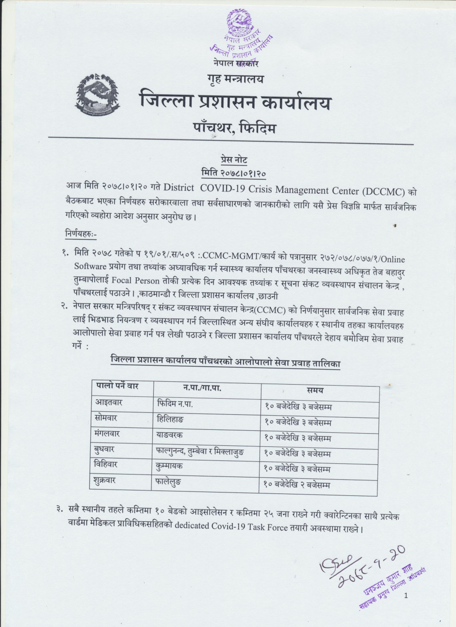 प्रेस नोट मिति २०७८।०१।२० गते, सोमबार