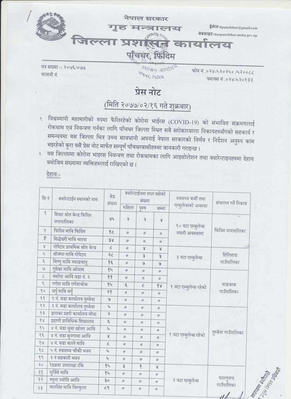 प्रेस नोट, मिति २०७७।०२।१६ गते शुक्रबार